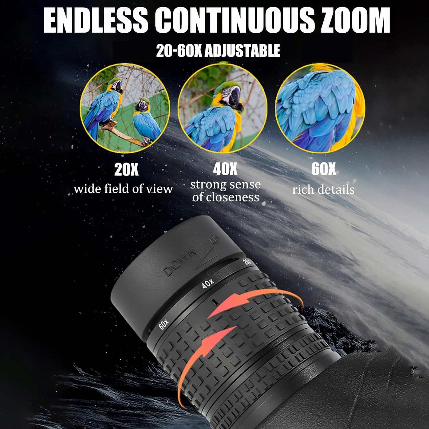 Monokular Docanio 20-60 × 80, IPX6, BAK4 + FMC, штатив, держатель смартфона