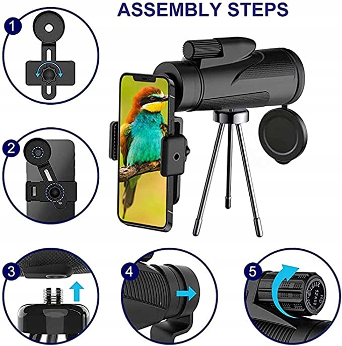 Монокулярный телескоп для мобильного телефона, простой в установке , предоставляет изображение HD или видео, чтобы поделиться с друзьями.