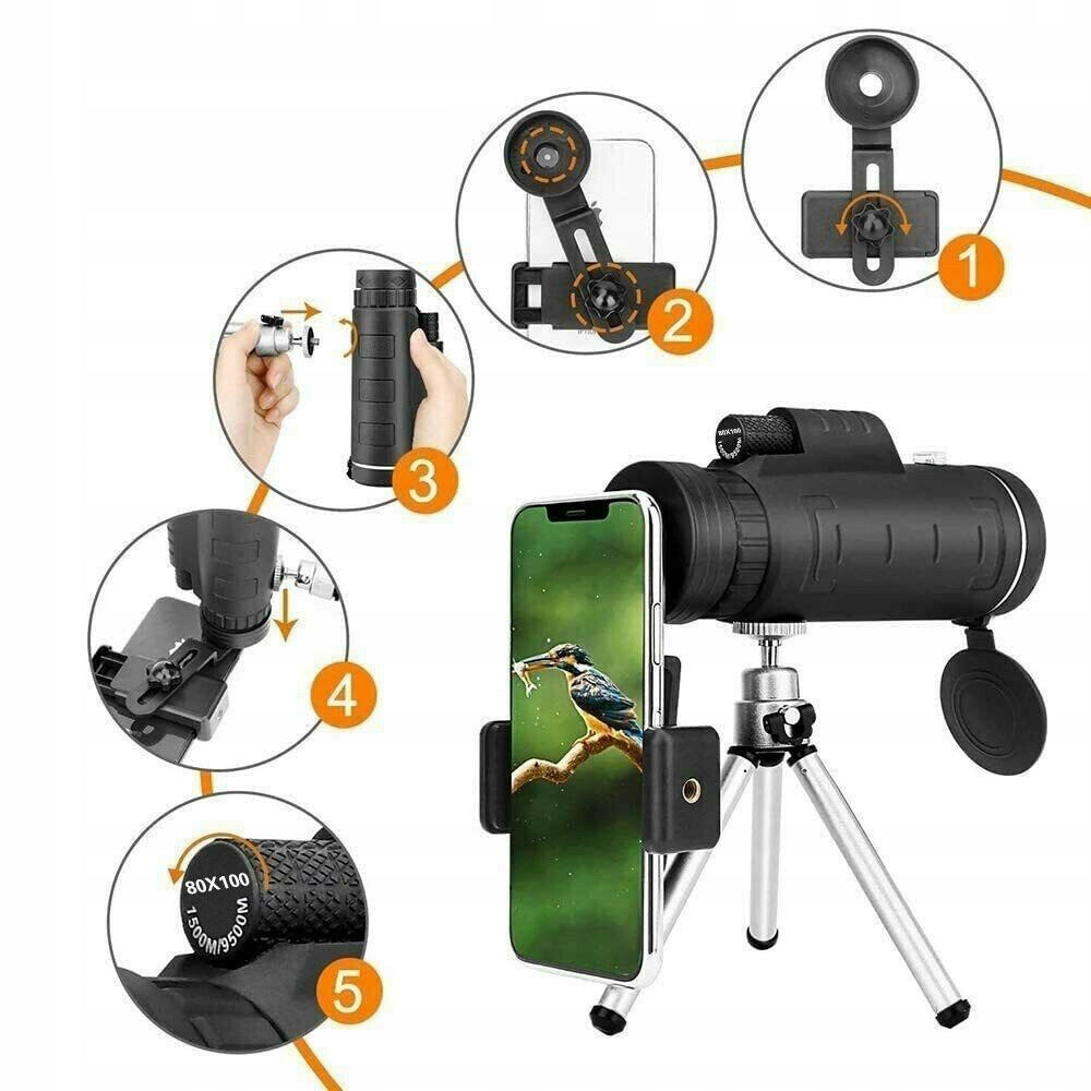 🔭🔭 【монокулярный телескоп с увеличением 80 x 100】 Этот монокулярный телескоп оснащен впечатляющим в 80-кратным расширением и линзом 100 мМ, так что вы можете увеличить отталкивающие предметы с невероятными деталями. Смотрите диких животных, планет и пейзажи, как никогда раньше.