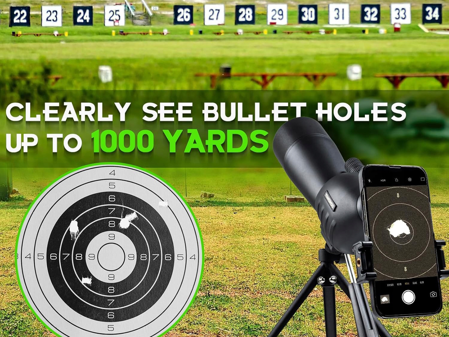 Регулируемое, сильное увеличение 25-75x и мощный объектив 60 мм позволяют отслеживать цель и увеличить ее для получения более подробной информации. Идеально подходит для стрельбы по цели, охоты, наблюдения за птицами, блуждания, наблюдения за звездами, путешествиями, спортом и т. Д.