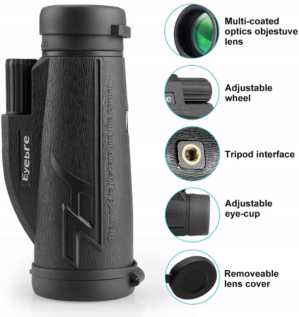 Наслаждайтесь идеальным монокулярным телескопом. Идеально подходит для охоты, скалолазания, наблюдения за птицами, концертов, спортивных мероприятий, блуждания, кемпингов и путешествий. Подходит для большинства смартфонов.