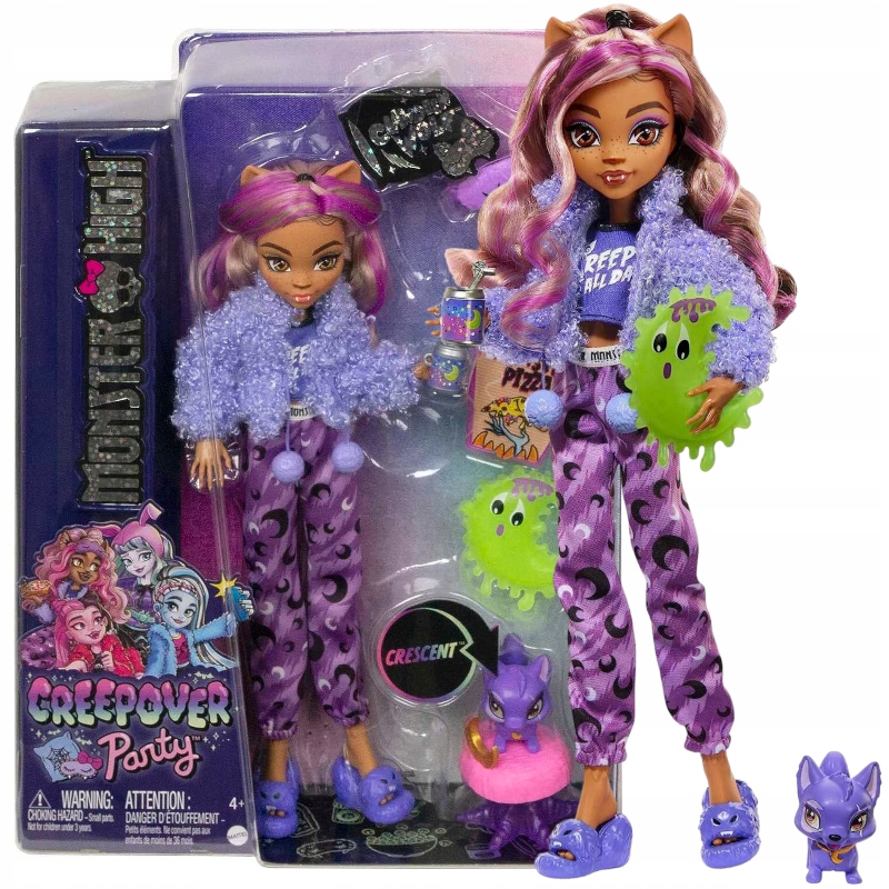 MONSTER HIGH КРІПОВЕР ПАРТІ КЛОДІН ВОЛФ ПЕРЕТВЕНЬ ЛЯЛЬКА ПІЖАМА ПАРТІ 4+
