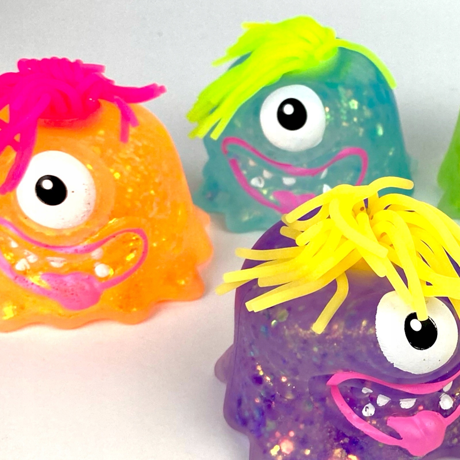 У монстра очаровательный, забавный вид - один большой глаз, широкая улыбка и красочные, резиновые волосы, которые можно растянуть . Это отличный способ творчески провести время и взять руки, особенно в моменты скуки или стресса. Идеально идеально подходит для детей и взрослых.