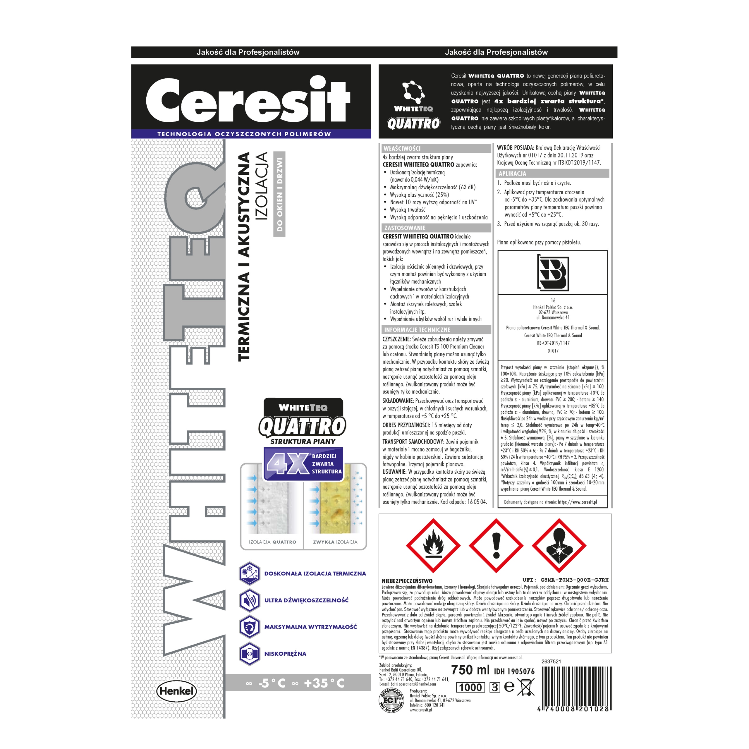 Отличная внутренняя структура и механическая стойкость делают Ceresit WHITETEQ QUATTRO отличным продуктом, подходящим для монтажно-монтажных работ – как внутри, так и снаружи