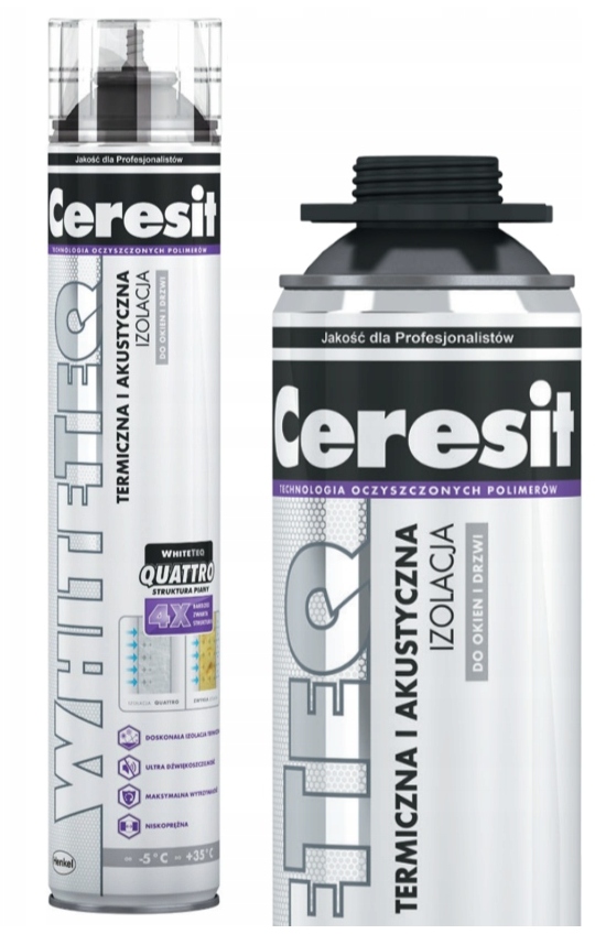 Высокое давление при затвердевании обычных пенополиуретанов часто является причиной деформации оконных рам и дверей. рамки. Благодаря более низкому давлению пены Ceresit WHITETEQ QUATTRO риск повреждения соседних элементов сводится к абсолютному минимуму.