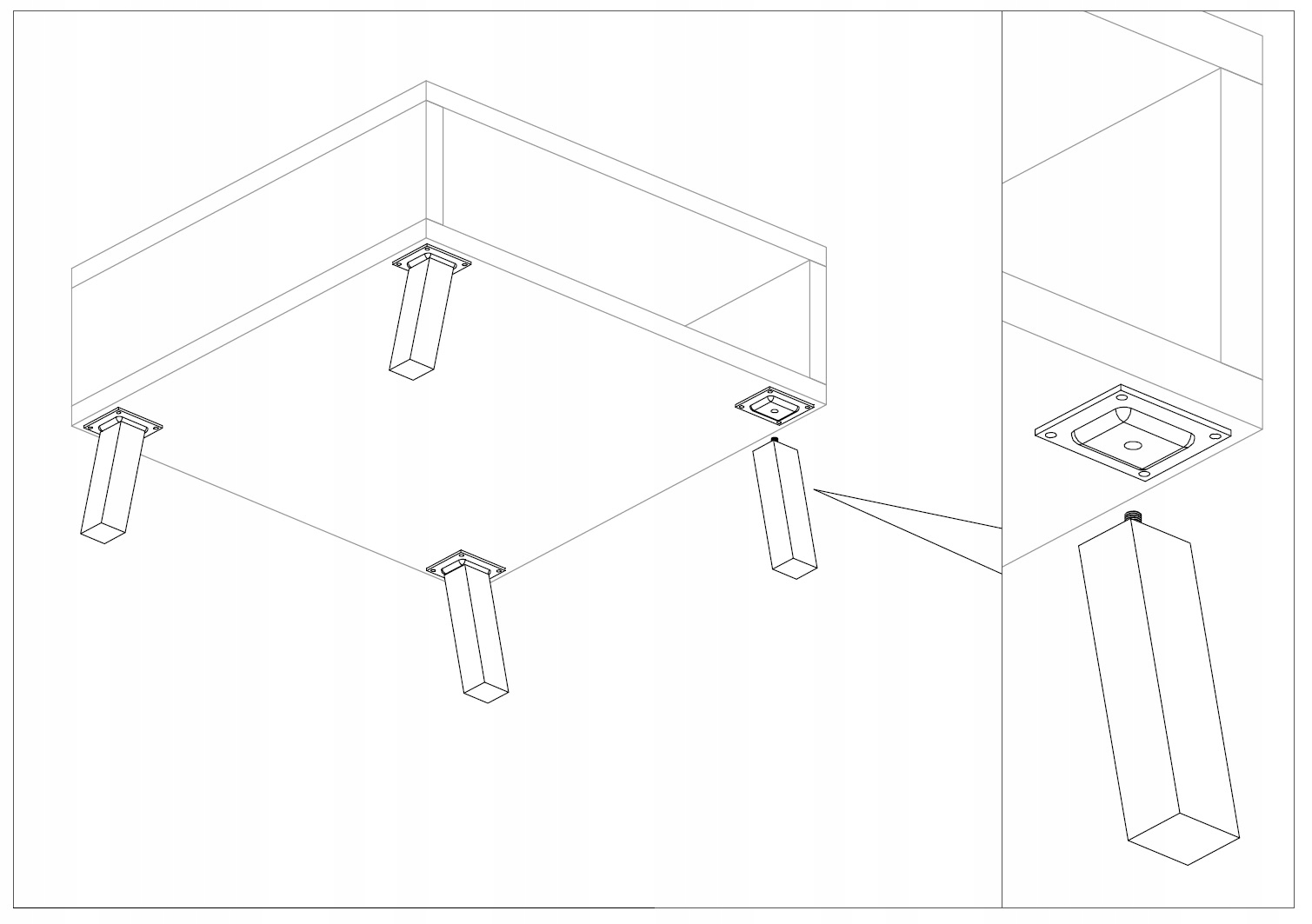 Листы для крепления ножки под прямым углом. В зависимости от ножки может использоваться прямая или косая сборка.