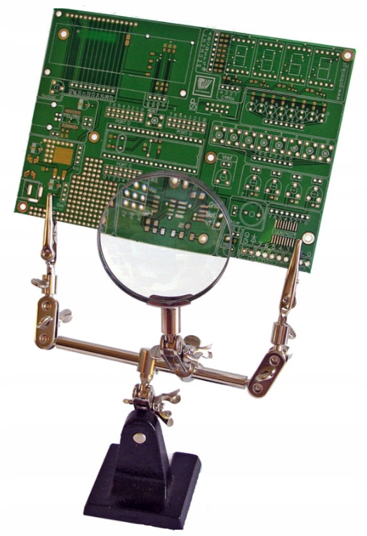 Оптический набор, третья ручка, рука, лупа — незаменимый элемент оборудования в мастерской каждого любителя DIY, любителя или энтузиаста электроники. Комплект третьей руки состоит из металлического основания, двух рычагов с захватами типа «крокодил» и увеличительного увеличительного стекла. Как следует из названия, комплект третьей руки незаменим при выполнении работы, когда обе руки заняты. Набор для третьей руки будет полезен при пайке проводов и кабелей, удерживании мелких элементов, склеивании и т. д. Конструкция захватов и увеличительного стекла на стреле отличается очень высокой свободой перемещения.