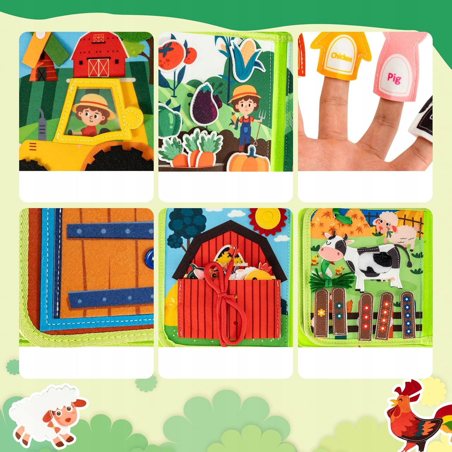 БИЗИ-ДОСКА МОНТЕССОРИ ДЛЯ 1-4 ЛЕТ, КНИГА ДЛЯ ДЕТЕЙ ИЗ ВОЙЛА, ФЕРМЕРСКАЯ ТЕМА