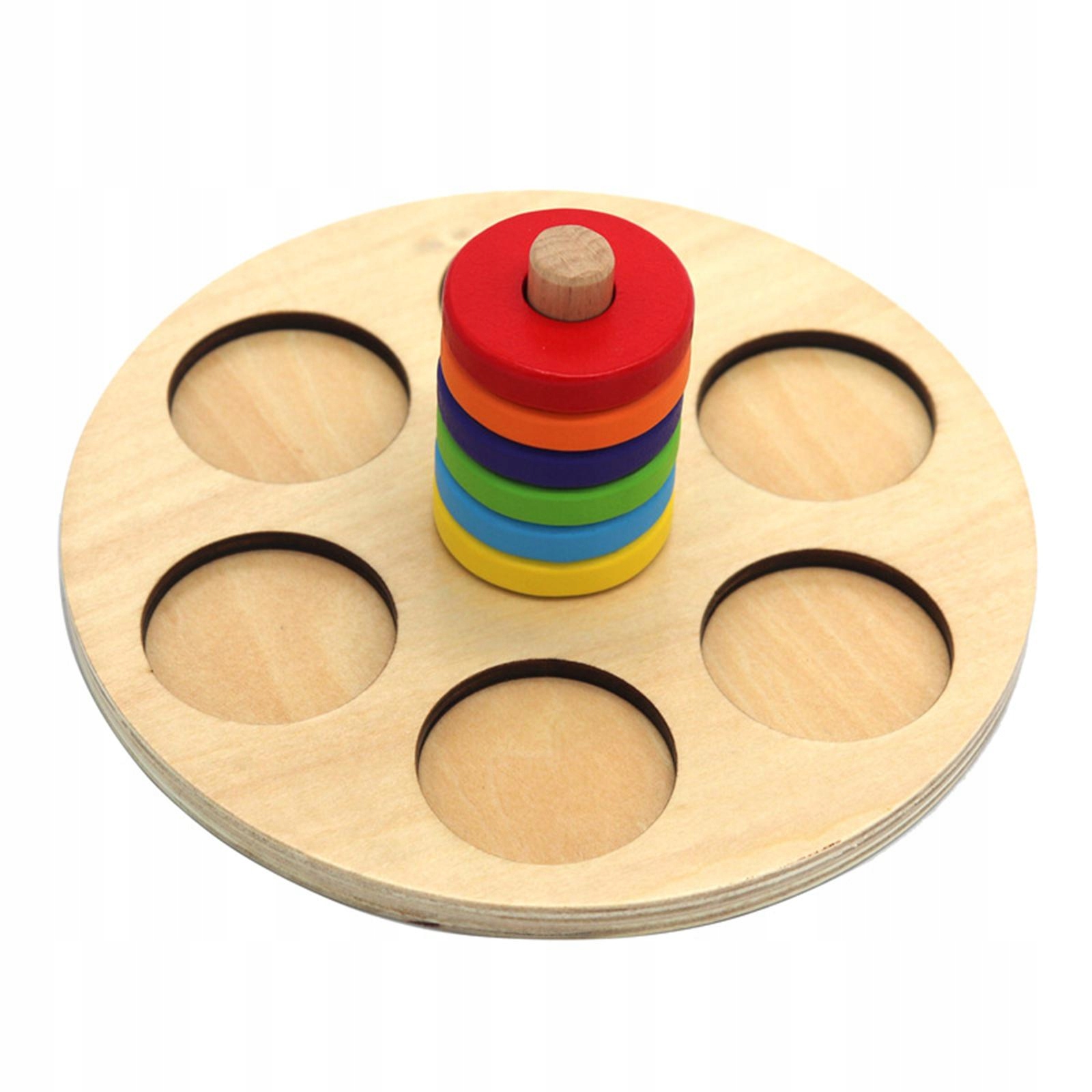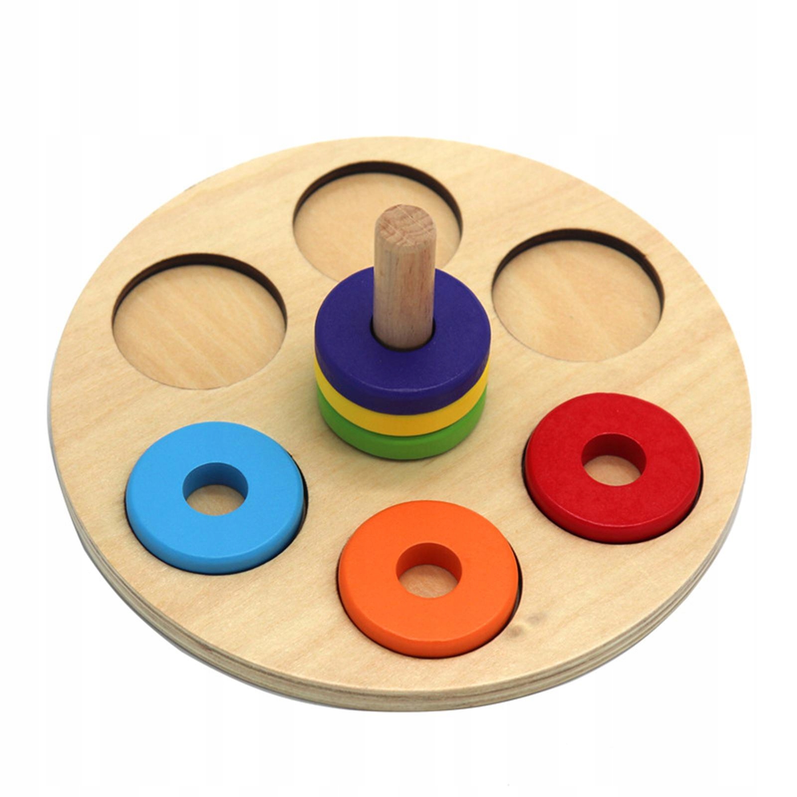 Подключаемая булочка Стабируемая игрушка: она состоит из деревянной основы и 6 красочных круглых кольцевых блоков, которые можно легко положить в основание поста, что является хорошим способом стимулировать интерес детей. Играть.