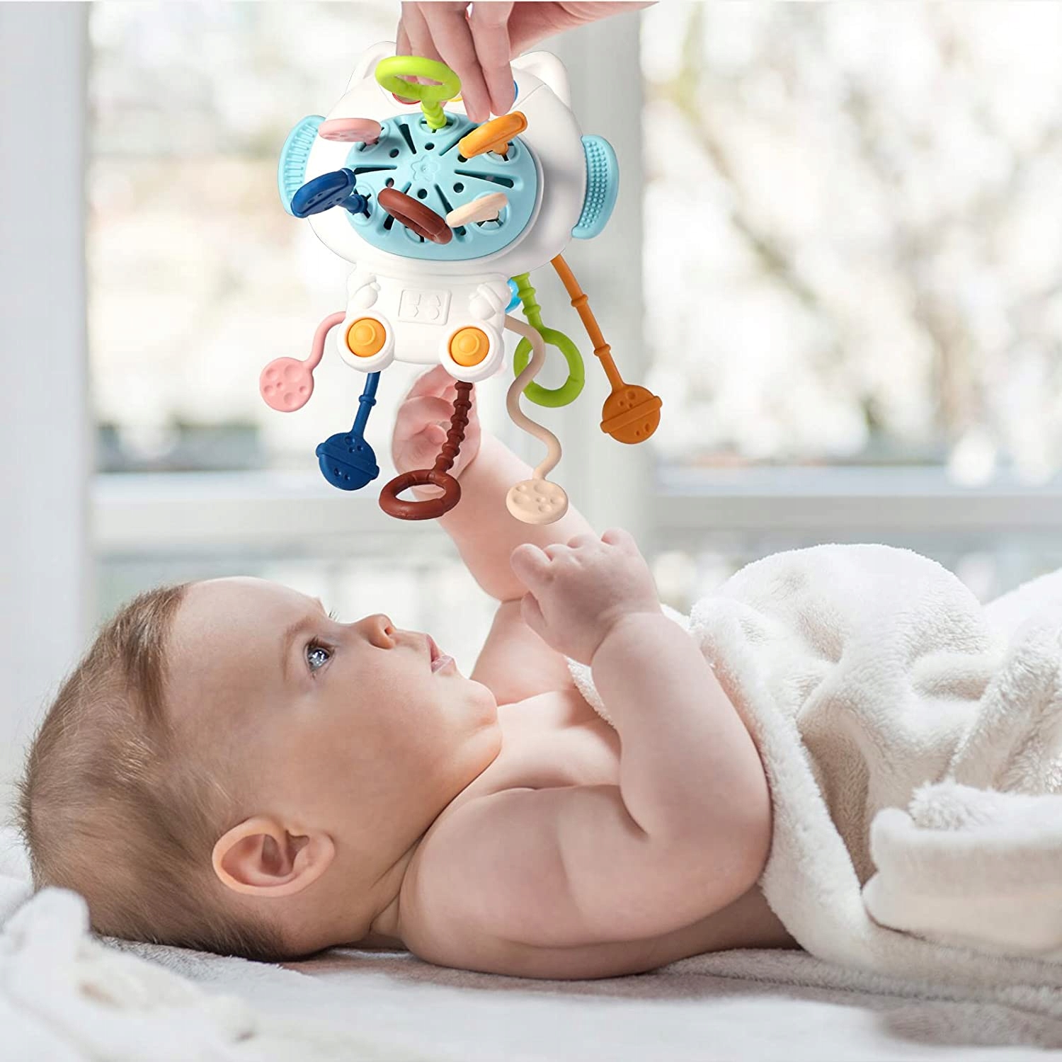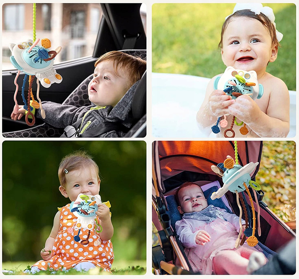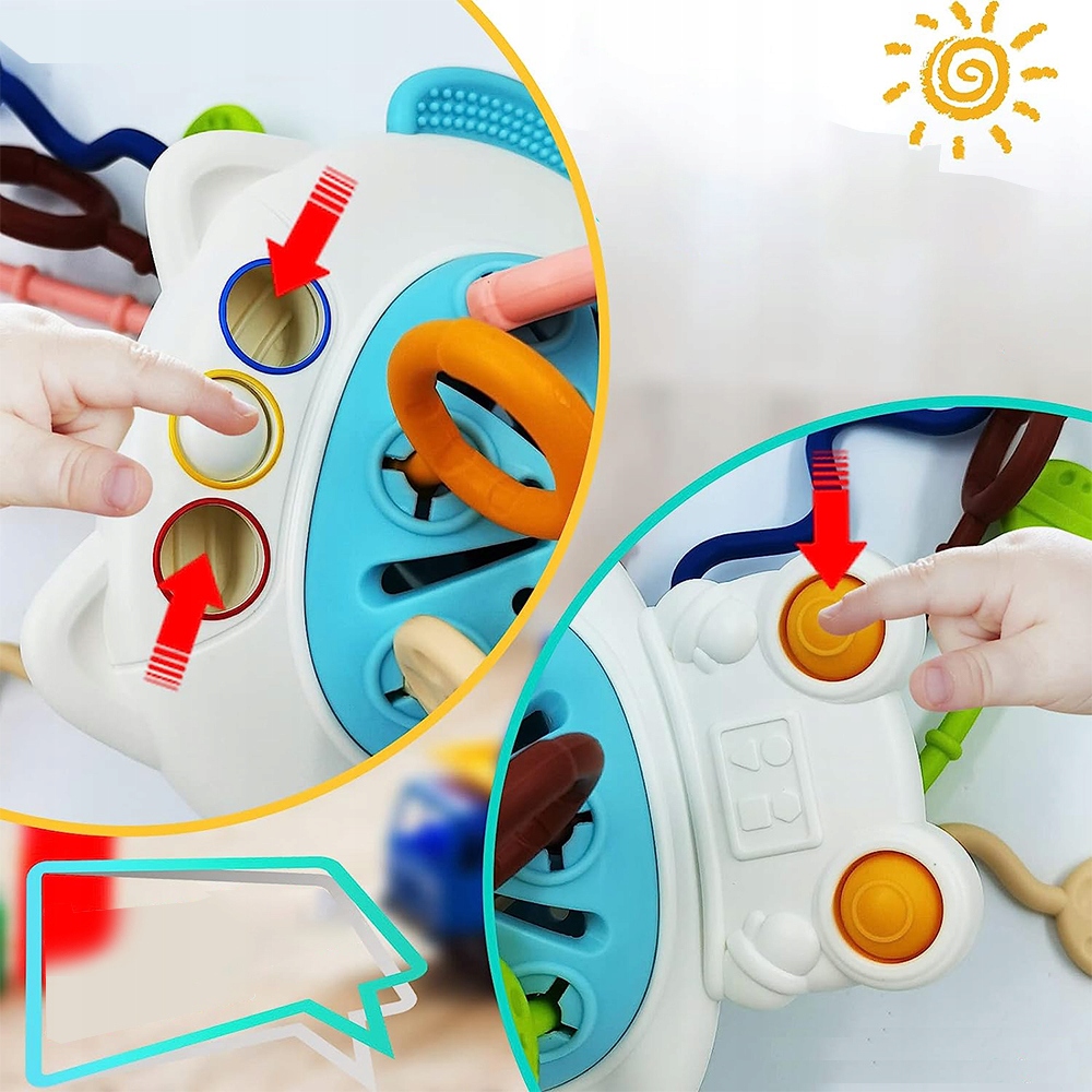 - 🎉 -【Игрушки с мелкой моторикой для путешествий】 - Игрушки для путешествий для маленьких детей 1–3 лет можно подвешивать на детские сиденья, коляски и люльки. Компактный размер и легкий вес делают детские игрушки портативными с 6 месяцев и пригодными для путешествий по дорогам, поездам и самолетам. Струны дают богатые тактильные ощущения, малыши могут укрепить мышцы рук, развить мелкую моторику, сенсорное исследование, мелкую моторику и зрительно-моторную координацию, тянув и прикасаясь к сенсорным игрушкам.