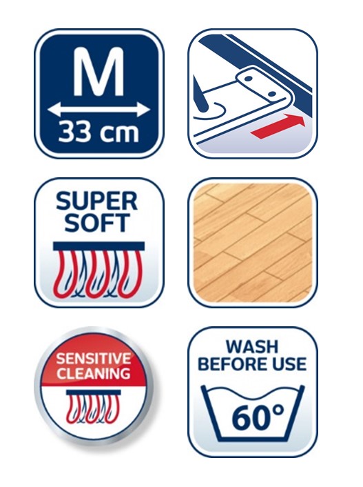 Супер мягкий леп на мопе Combi M предназначен для очистки особенно деликатных полов. В то же время он моет и заботится о полах. Таким образом, это лучший выбор для этажей, таких как паркет, напольные панели и пробковые полы. Полиэфирные волокна поглощают только минимальное количество воды, а их конструкция петли защищает пол. Благодаря этому, чувствительность к влаге и ценной древесине из дерева будет долгое время оставаться привлекательным внешним видом, и даже через многие годы они будут выглядеть хорошо. Наложение можно промыть в стиральной машине при 60 ° C до 200 раз без потери чистящих свойств. Ширина 33 см. Он также подходит для чистой Twist Mop (версия для защелок).