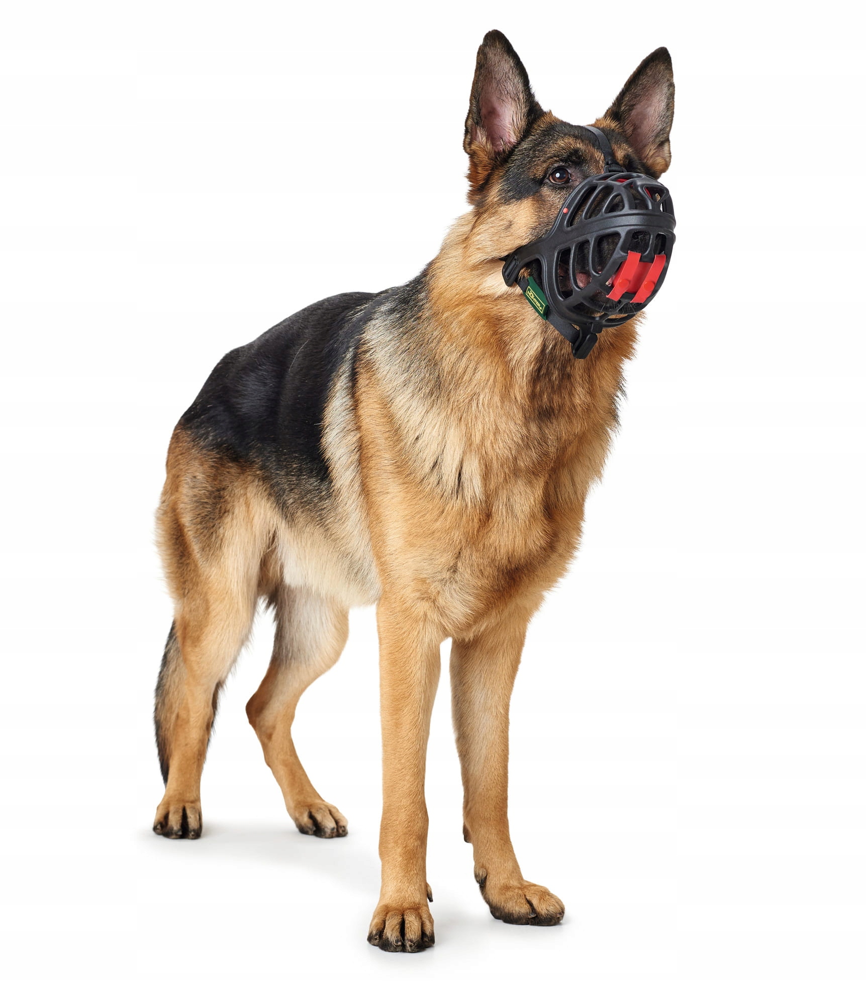 Инновационный намордник из мягкого пластика позволяет собаке свободно дышать. Благодаря съемной передней части собака может свободно есть и пить во время использования.