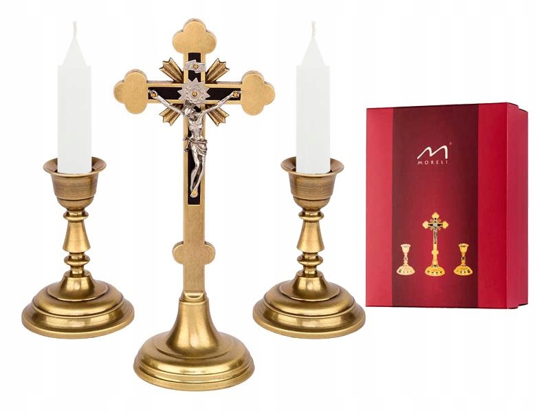 Сплошной крест и массивные подсвечники характеризуются высочайшим качеством и качеством. долговечность. Они изготовлены из цинкового сплава и покрыты латунным гальваническим покрытием, защищающим от коррозии. Все это было защищено качественными лаками, поэтому купленный набор колядок прочен и прослужит долгие годы.