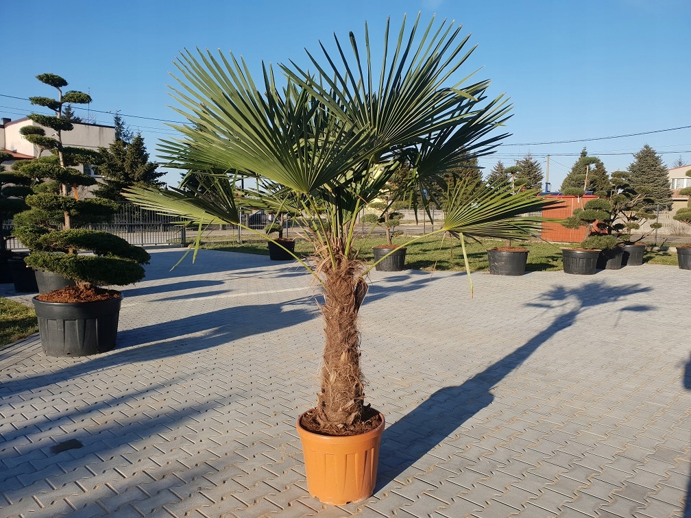 Предлагается — Trachycarpus Fortunei — одна из немногих пальм, пригодных для выращивания на открытом воздухе в нашем климате. При посадке в грунт выдерживает кратковременные заморозки до -16/17 градусов Цельсия, а также жару. При выращивании в горшках пальмы следует поддерживать при температуре не выше -6. Зимой при посадке в грунт он явно нуждается в зимней защите в виде греющего кабеля и нетканого материала. Укрываем пальму при температуре ниже -8 градусов по Цельсию. Подробную информацию наши клиенты получают на электронную почту о том, как правильно защитить растение. Очень важная информация: Trachycarpus Fortunei не является комнатной пальмой. Конечно, при определенных, удобных условиях ее можно зимовать в помещении, но мы не рекомендуем приобретать ее с расчетом на интерьер, так как это непросто. Эта пальма имеет естественно коричневые кончики листьев. Пальчики листьев обычно ломаются ветром, поэтому они приятно трепещут на ветру, что более слышно у более высоких экземпляров. Загнутые коричневые кончики листьев – не дефект, а неотъемлемая часть жизни Trachycarpus.