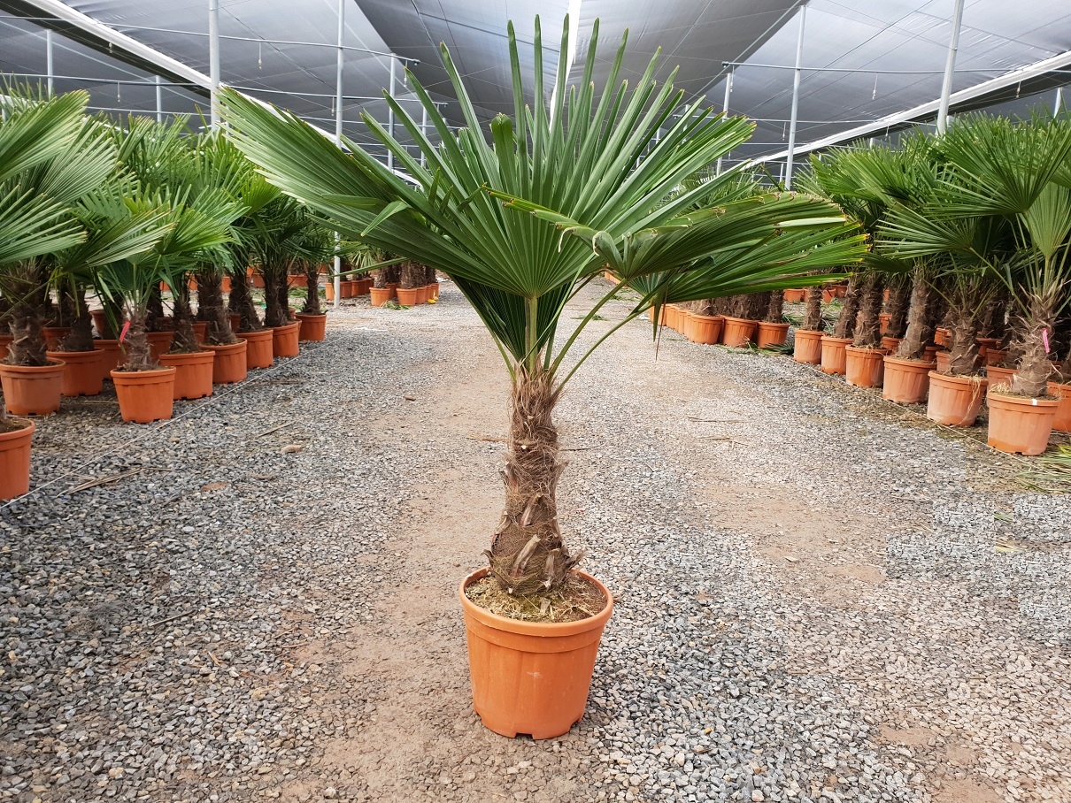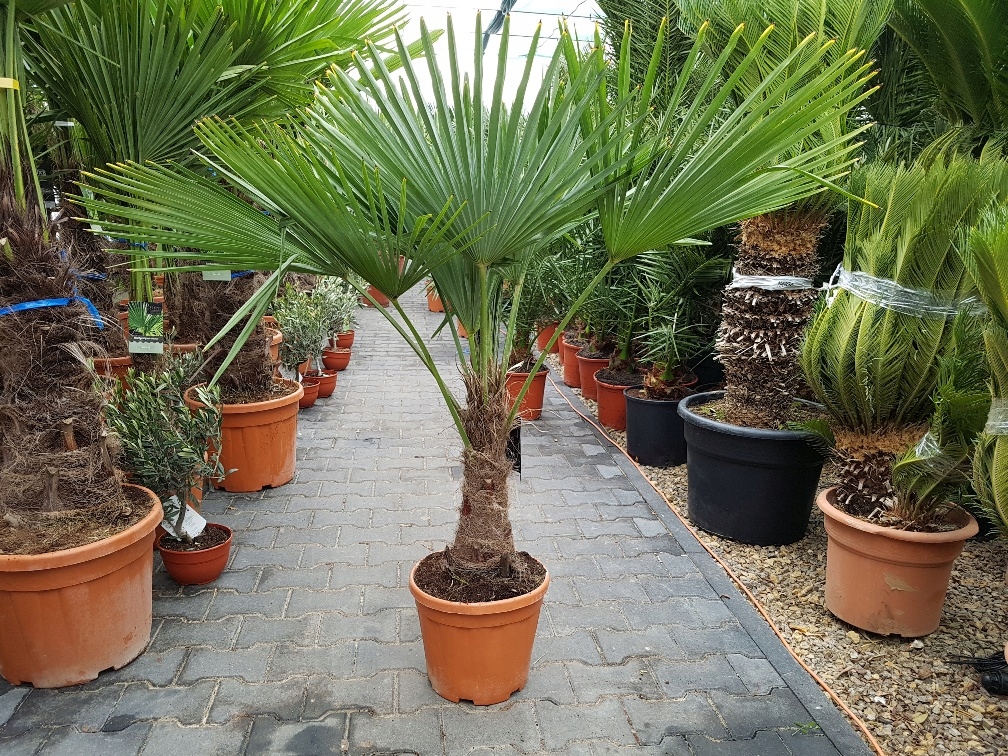 Предлагается — Trachycarpus Fortunei — одна из немногих пальм, пригодных для выращивания на открытом воздухе в нашем климате. При посадке в грунт выдерживает кратковременные заморозки до -16/17 градусов Цельсия, а также жару. При выращивании в горшках пальмы следует поддерживать при температуре не выше -6. Зимой при посадке в грунт он явно нуждается в зимней защите в виде греющего кабеля и нетканого материала. Укрываем пальму при температуре ниже -8 градусов по Цельсию. Подробную информацию наши клиенты получают на электронную почту о том, как правильно защитить растение. Очень важная информация: Trachycarpus Fortunei не является комнатной пальмой. Конечно, при определенных, удобных условиях ее можно зимовать в помещении, но мы не рекомендуем приобретать ее с расчетом на интерьер, так как это непросто. Эта пальма имеет естественно коричневые кончики листьев. Пальцы листьев обычно ломаются ветром, поэтому они приятно трепещут на ветру, что более слышно у более высоких экземпляров. Загнутые коричневые кончики листьев – не дефект, а неотъемлемая часть жизни Trachycarpus.