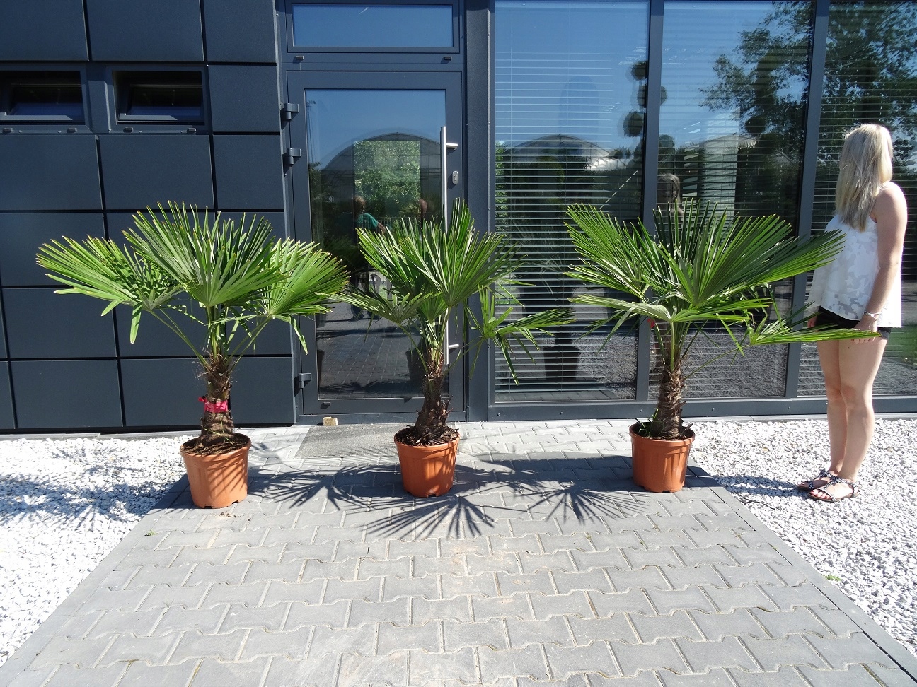 Чтобы лучше проиллюстрировать размер выставленных на продажу пальм, на фото справа мы представили избранные пальмы Trachycarpus Fortunei в размере, который является предметом данного аукциона, по сравнению с крупными старыми экземплярами здесь, 400 см. На наш взгляд, это самые маленькие растения, которые можно посадить в землю, чтобы получить отличный эффект, а пальма не настолько маленькая, чтобы спрятаться в траве :)