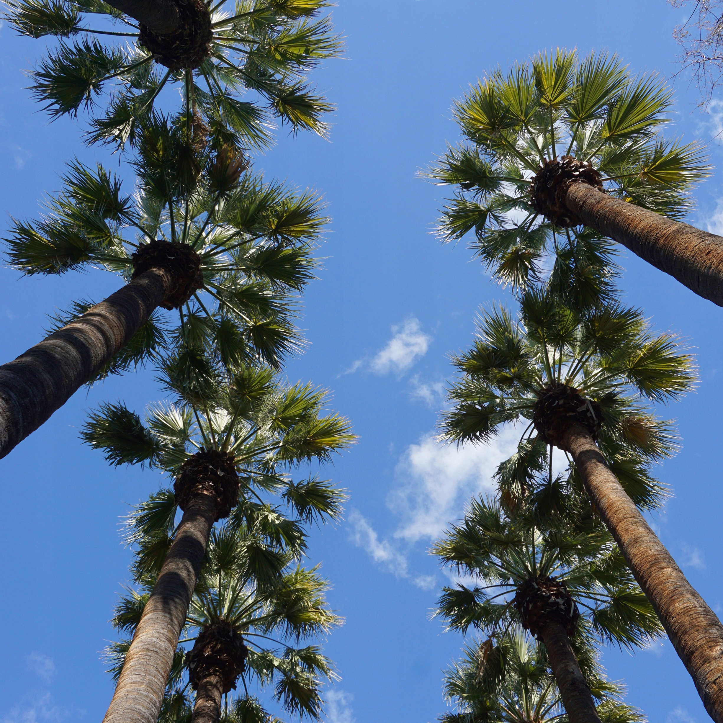 У Резиновой ягоды огромные веерообразные листья. Их диаметр до 90 см! Они растут на вершине толстого ствола. Ствол имеет и декоративное значение – он неровный и шероховатый. На нем имеются следы и фрагменты старых деревянных черешков и волокон листьев. Пальма достигает крупных размеров – высотой более 2 м. 🌞