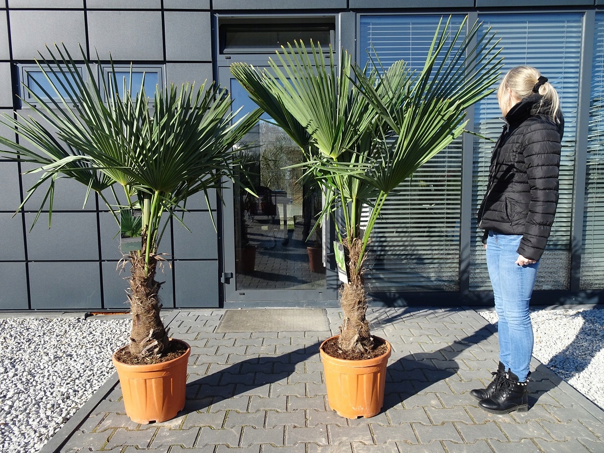 Предлагается — Trachycarpus Fortunei — одна из немногих пальм, пригодных для выращивания на открытом воздухе в нашем климате. При посадке в грунт выдерживает кратковременные заморозки до -16/17 градусов Цельсия, а также жару. При выращивании в горшках пальмы следует поддерживать при температуре не выше -6. Зимой при посадке в грунт он явно нуждается в зимней защите в виде греющего кабеля и нетканого материала. Укрываем пальму при температуре ниже -8 градусов по Цельсию. Подробную информацию наши клиенты получают на электронную почту о том, как правильно защитить растение. Очень важная информация: Trachycarpus Fortunei не является комнатной пальмой. Конечно, при определенных, удобных условиях ее можно зимовать в помещении, но мы не рекомендуем приобретать ее с расчетом на интерьер, так как это непросто. У этой пальмы кончики листьев естественно коричневые. Пальчики листьев обычно ломаются ветром, поэтому они приятно трепещут на ветру, что более слышно у более высоких экземпляров. Загнутые коричневые кончики листьев – не дефект, а неотъемлемая часть жизни Trachycarpus.