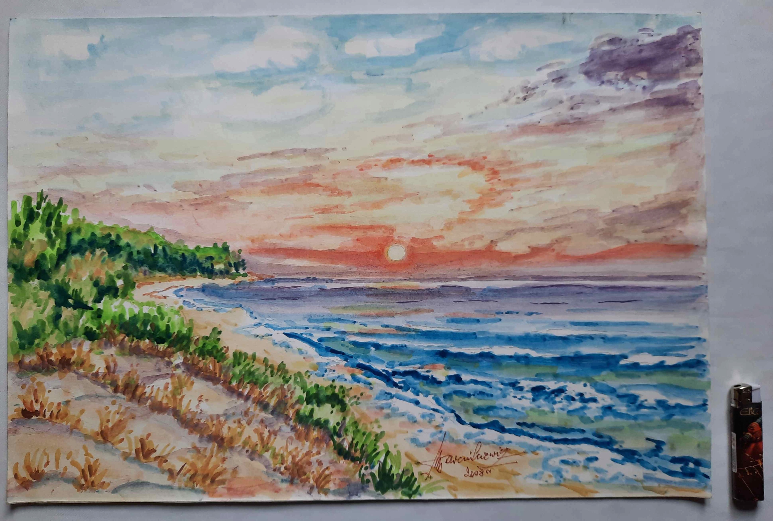 МОРСЬКИЙ ПЕЙЗАЖ МОРСЬКА АКВАРЕЛЬ З ПІДПИСОМ