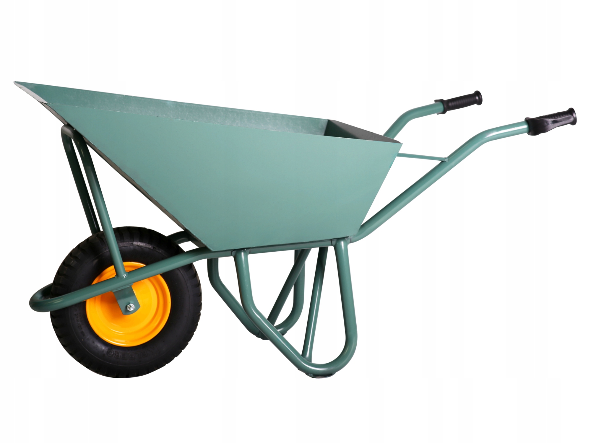 Тачка с прочной усиленной рамой идеально подходит для строительных площадок, особенно при проведении работ по укладке тротуарной плитки. Эргономичные ручки и надувное колесо обеспечивают комфорт при транспортировке агрегата.