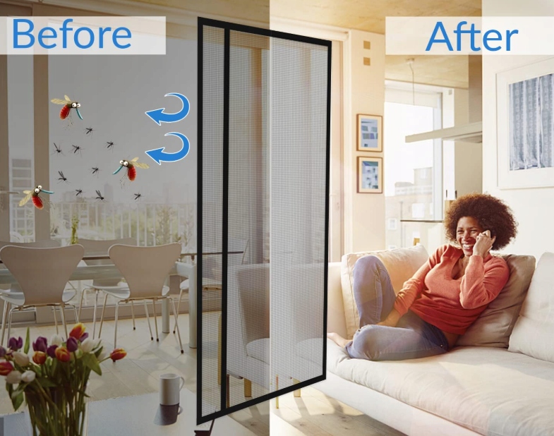【Впускает свежий воздух и свет】По сравнению с обычными оконными жалюзи и москитными сетками, эта москитная сетка воздухопроницаема и прозрачна, пропуская больше солнечного света и свежего воздуха. Идеально подходит для установки москитных сеток на балконные двери, спальни, кухни и детские комнаты.