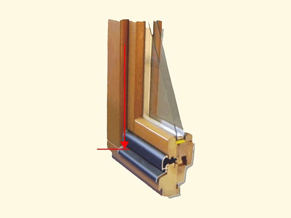 В случае деревянных окон высота (B) измеряется до нижнего карниза, как показано стрелкой на фотографии справа.