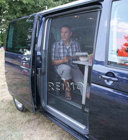 Двери с москитной сеткой REMIcare II VAN для VW T5 /T6 Kombi Модели Multivan и Caravelle. Дверь-ширма окружена идеально закрывающейся рамой. Уютный декор в форме сот создает атмосферу праздника. Хороший вид гарантирован. Вы эффективно защищены от мелких вредителей (даже от самых маленьких кусающих мух).