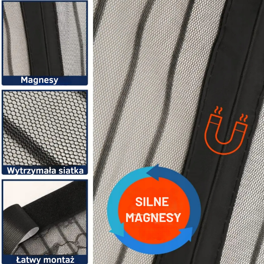 moskitiera posiada magnesy po obu wewnętrznych stronach, które otwierają i zamykają się Automatycznie.
