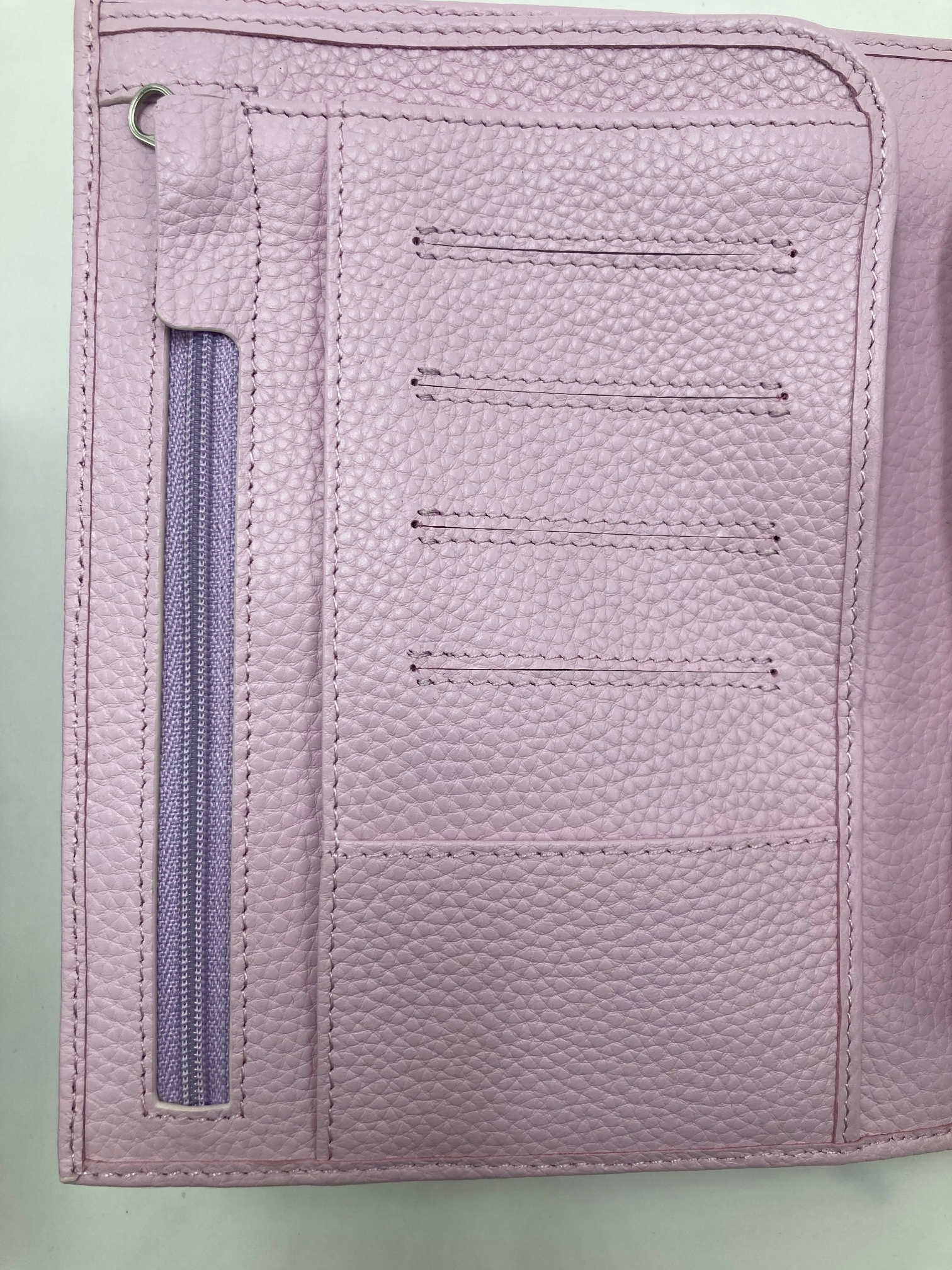 - Внутри слева: отделение на молнии для монет/денег или документов; Внутри: два боковых кармана для хранения карточек; Несколько слотов для карт с обеих сторон для хранения кредитных и визитных карточек.