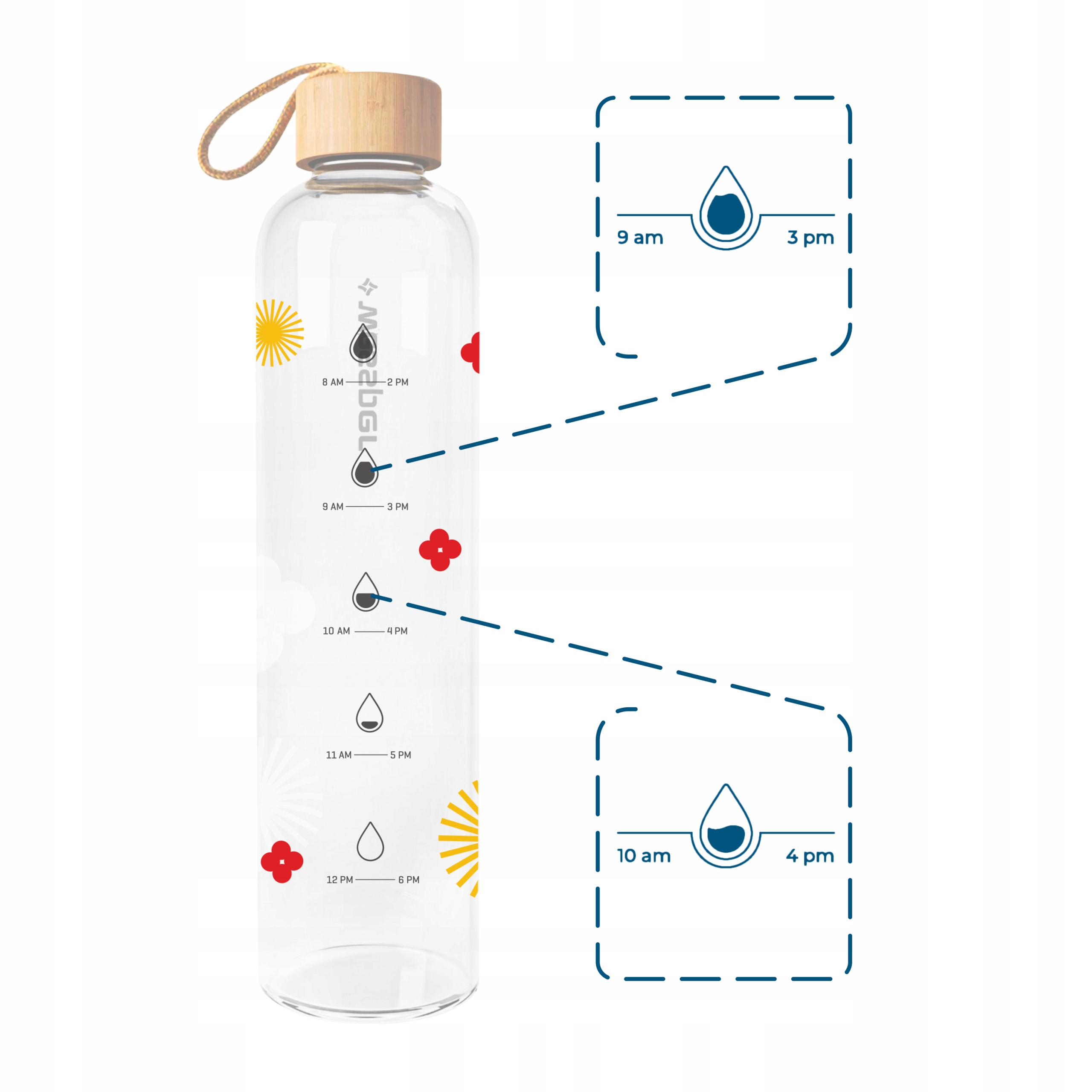 , напечатанная на стекле, мотивационная мера в форме часовой шкалы (с 8:00 до 18:00) является осторожным, но эффективным способом напоминать вам регулярно пить воду. Два заполнения в день достаточно, чтобы покрыть рекомендуемую минимальную гидратацию. Благодаря этому вы поддерживаете концентрацию, метаболизм и хорошо - без применения и без усилий.