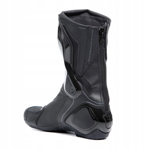Дополнительную безопасность обеспечивают жесткие чехлы голеней, ползунки по бокам, жесткая подошва и каблук. Резиновая подошва сводит к минимуму риск потери сцепления с дорогой, обеспечивая при этом полный контроль над рычагом переключения передач. Застежка обуви сзади с возможностью регулировки на липучке позволяет максимально подогнать обувь независимо от строения икр и предпочтений пользователя.
