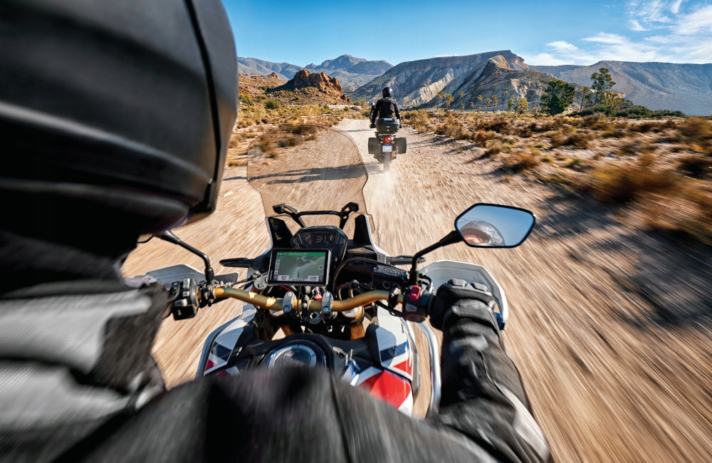 - Держите бдительность благодаря предупреждениям для мотоциклистов с дорожными угрозами, такими как острые повороты.
