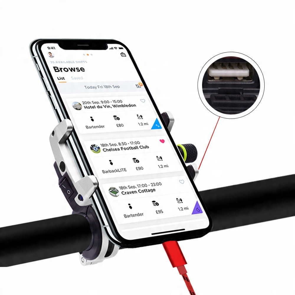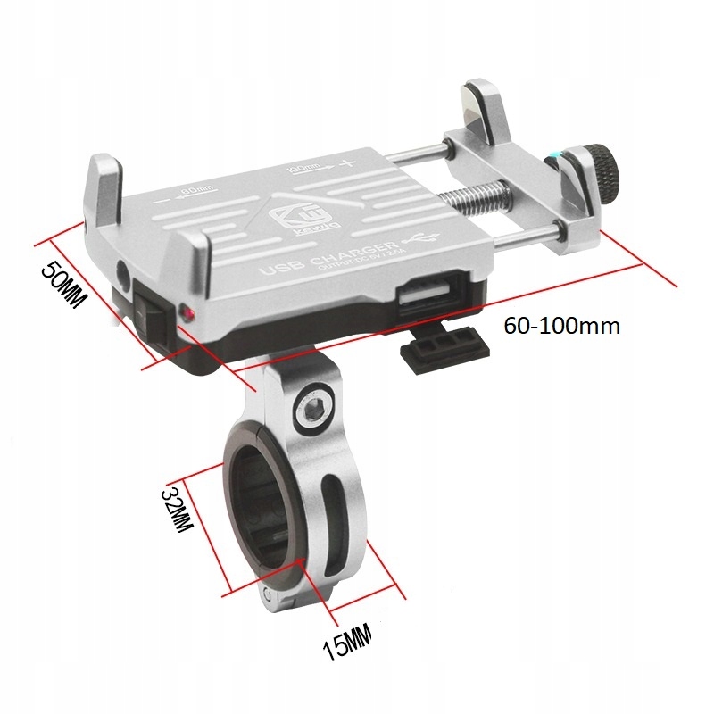 Алюминиевый держатель для телефона или навигации для мотоцикла, велосипеда, скутера с зарядным устройством USB