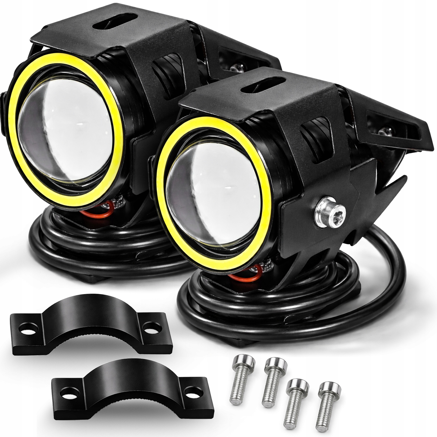 МОТОЦИКЛ ГАЛОГЕННЫЕ ЛИНЗЫ СВЕТОДИОДНЫЕ КОЛЬЦА ЛАМПЫ ФАРЫ QAD CROSS 3000LM