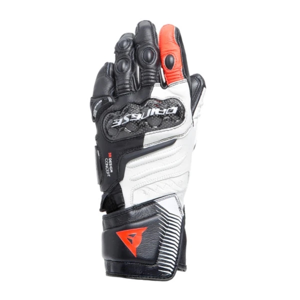 Перчатки изготовлены из козы. кожа с эргономичными защитой суставов пальцев из углеродного волокна. Это пример высочайших стандартов безопасности бренда Dainese, т. е. система DCP для наилучшей защиты мизинца, усиленная манжета и внутренние швы, обеспечивающие большую устойчивость к истиранию.