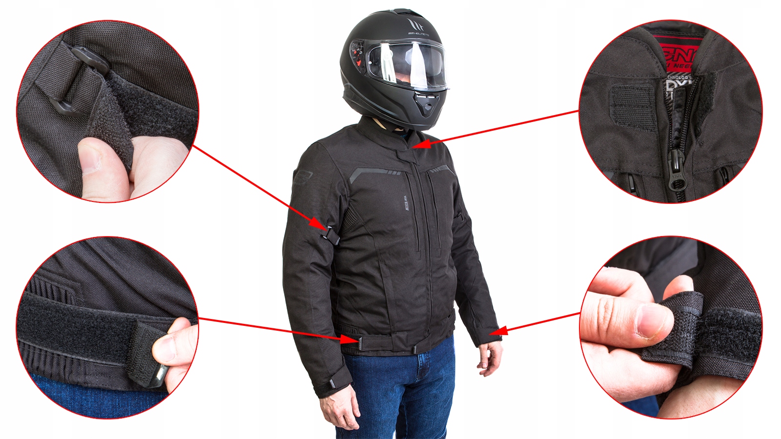 - оптимальная посадка благодаря регулировке на талии, бедрах и рукавах