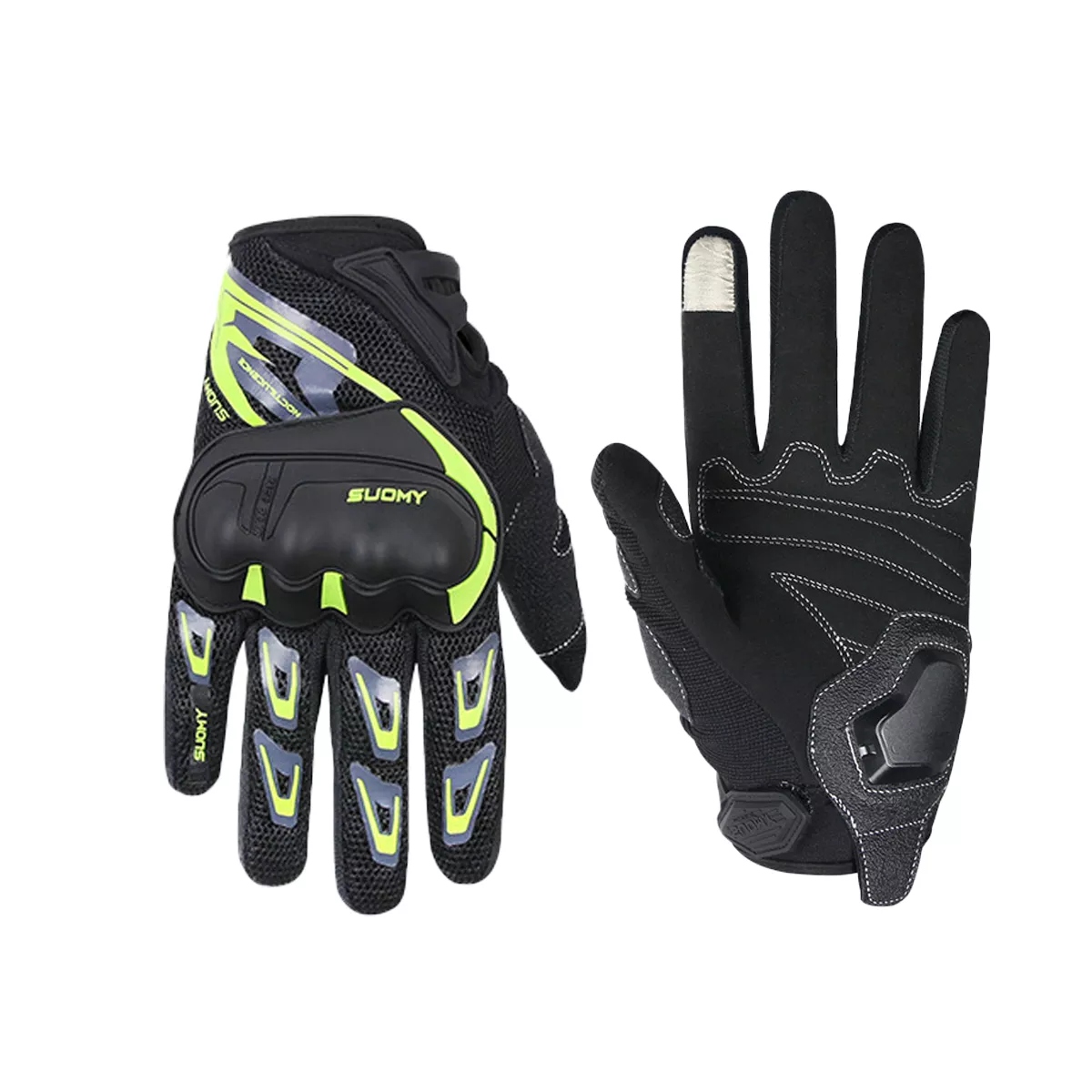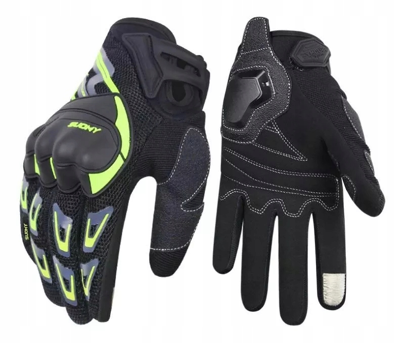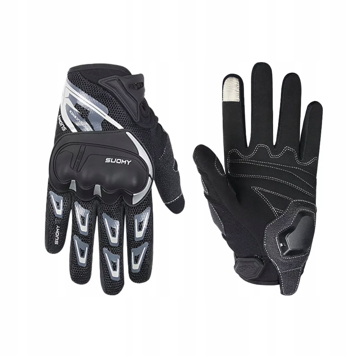 Перчатки SUOMY чрезвычайно легкие и удобные. Их самым большим преимуществом, благодаря специальному покрытию, является возможность управлять телефоном указательным пальцем. Перчатки застегиваются на липучку, что делает их надевание быстрым и удобным. Они идеально повторяют форму руки. Перчатки имеют накладки на костяшки пальцев. Они изготовлены из дышащей ткани, которая впитывает и отводит влагу и пот. Аккуратно изготовленные чехлы не зажимают и не мешают при езде. Их можно использовать для езды на мотоцикле, а также для бега, горных походов и других видов активного отдыха.