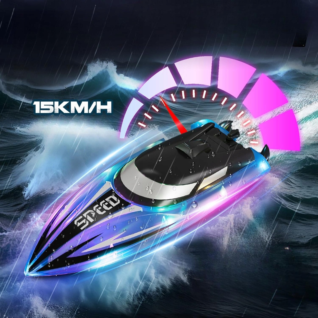 Интеллектуальный дистанционное управление 2,4 ГГц с функцией против линии, обеспечивая одновременные гонки многих лодок с дистанционным управлением. Просто подключите лодку и пилота, чтобы играть в многопользовательской среде с друзьями. Отдаленная лодка с светодиодным освещением -это уникальная и забавная летняя водяная игрушка. Подходит как для мальчиков, так и для девочек, чтобы играть в разных местах, таких как бассейны, озера, реки и так далее.