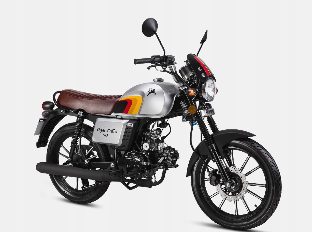 romet ogar caffe 50 - szyk, где бы вы ни появились. Это стильный вариант знаковой модели польского бренда, которая была обогащена спортивными аксессуарами. Это один из тех двух, которые вы не можете пройти безразлично. Благодаря этому вы выделитесь из толпы и попросите радости езды. Romet Ogar Caffe 50 также станет отличным началом приключения с мотоциклами для владельцев водительских прав Am.