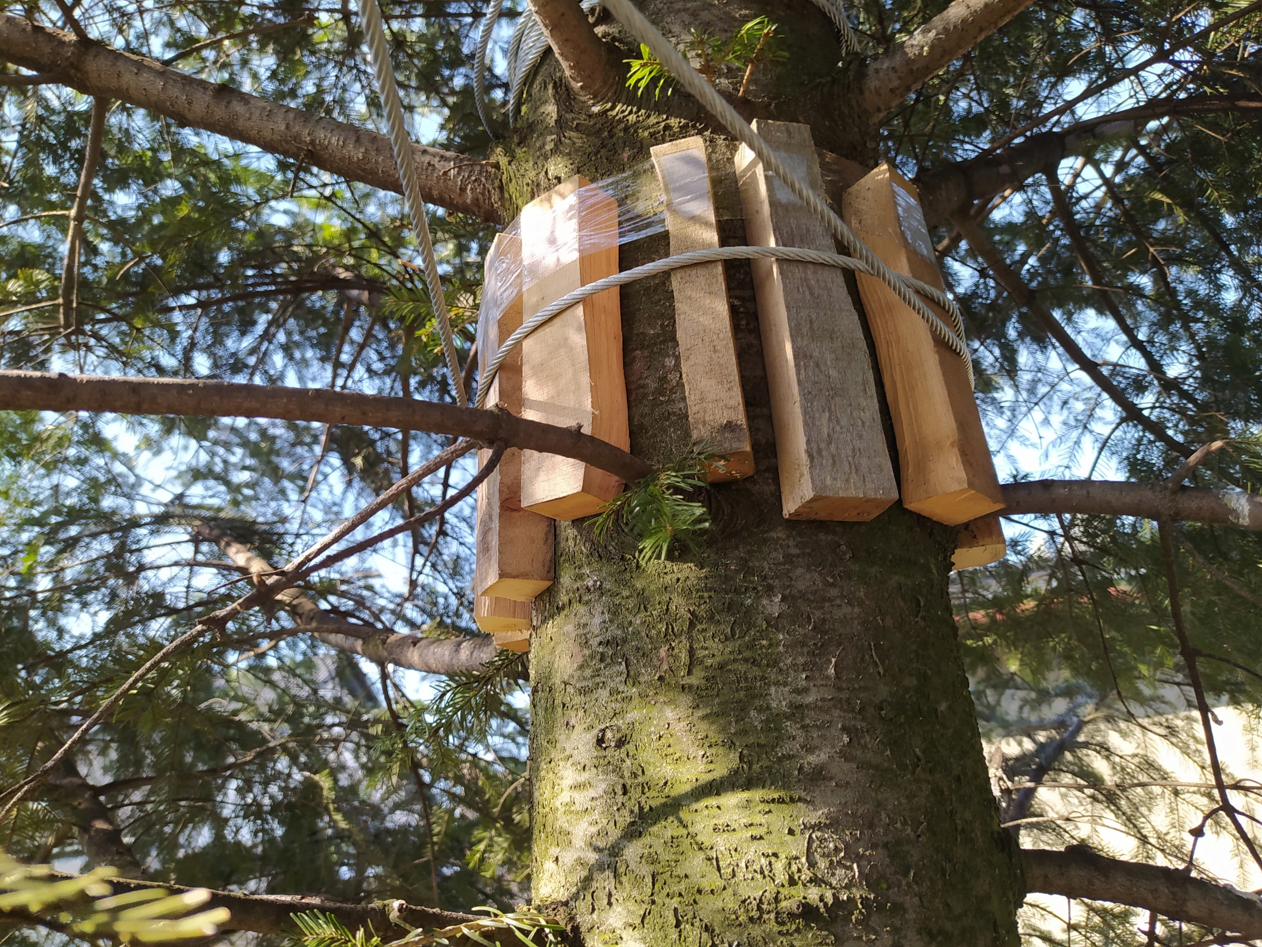 Простой и быстрый способ защитить деревья от повреждений. Предлагаемые чехлы и резины подвержены истиранию и повреждениям.
