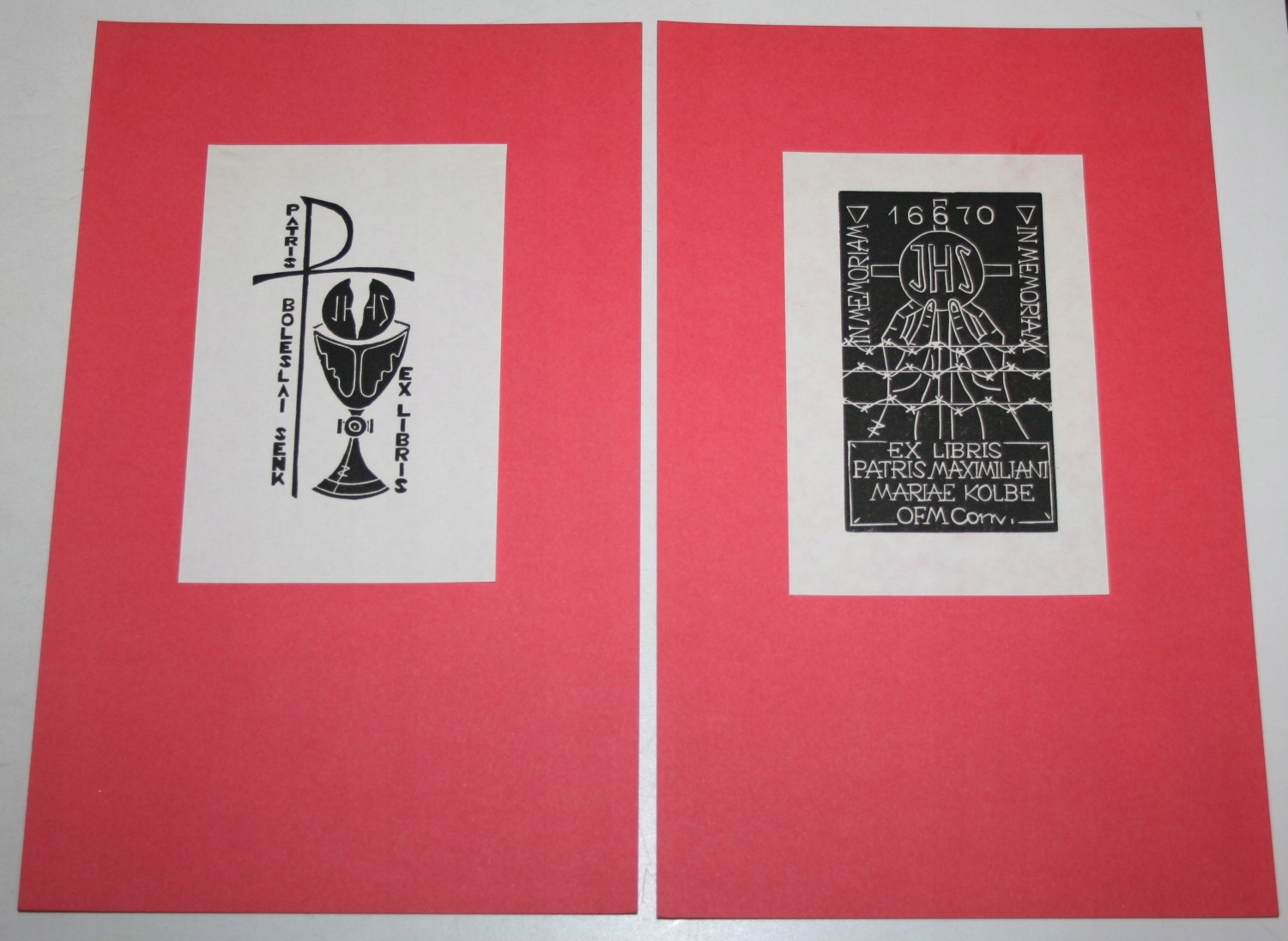 15 экслибрисов, наклеенных на розовый картон, 24 х 15 см