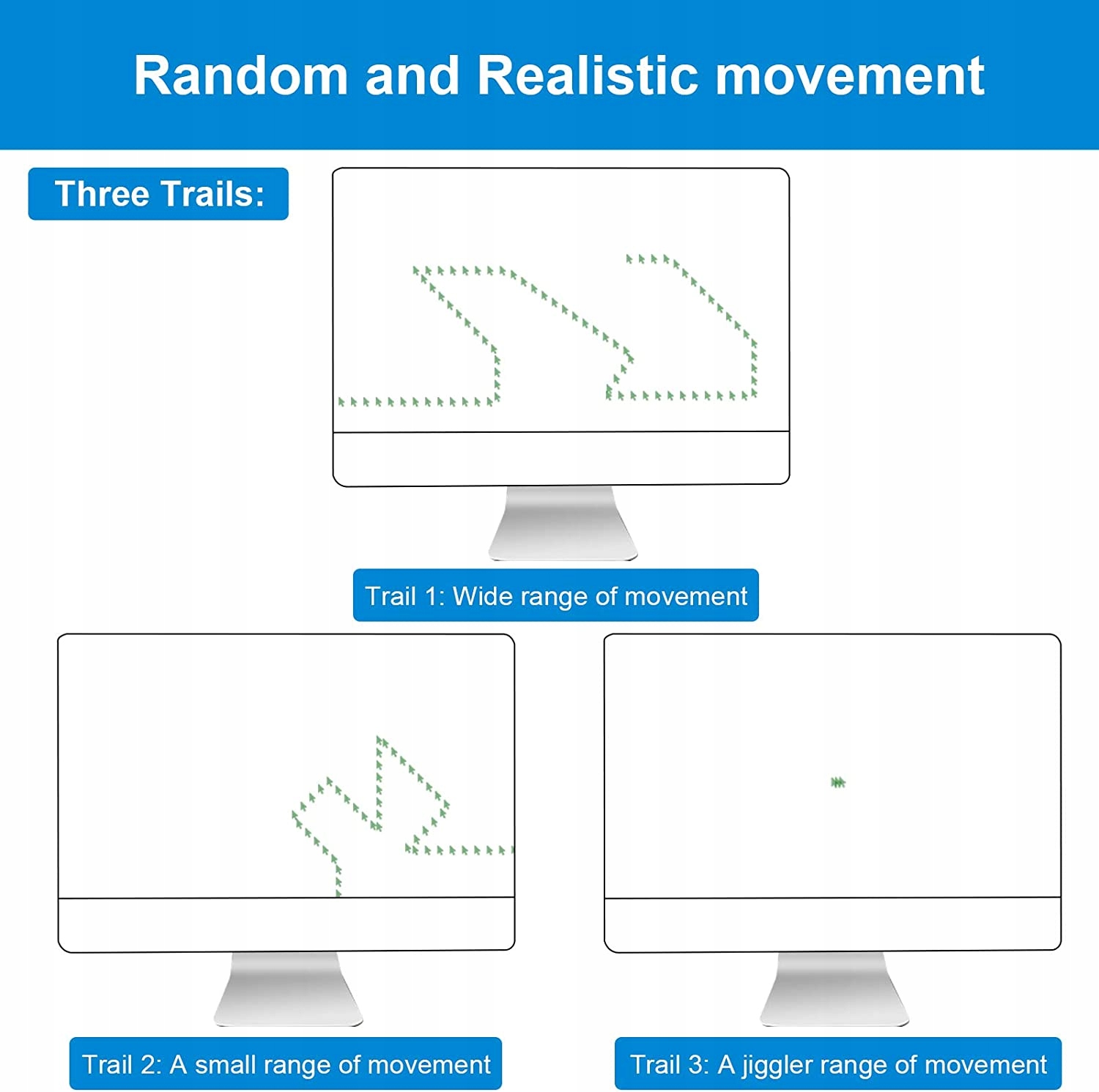 ➡️ Наше устройство отличается функцией многодорожечности и записи движения. Курсор перемещается автоматически, создавая случайный и непредсказуемый рисунок движения. Благодаря трем типам функций перемещения и памяти ваше присутствие в сети всегда видно, даже после перезагрузки компьютера.