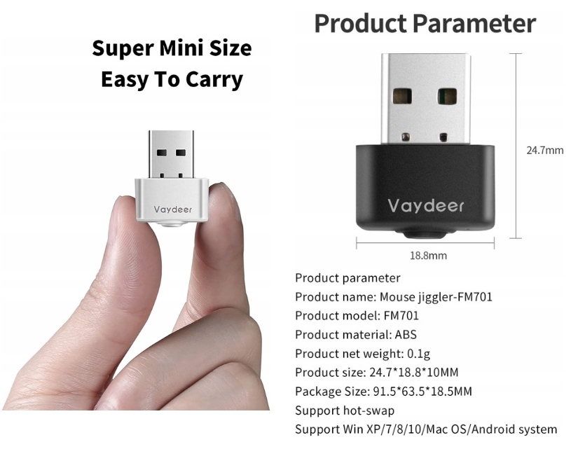 ➡️ Обратите внимание на Vaydeer Mouse Mover — устройство, гарантирующее 100% необнаружимость. Подключенный к вашему компьютеру, он работает незаметно, не позволяя ИТ-службе обнаружить неавторизованные устройства. Наслаждайтесь бесперебойной работой компьютера в режиме ожидания, не беспокоясь об обнаружении.