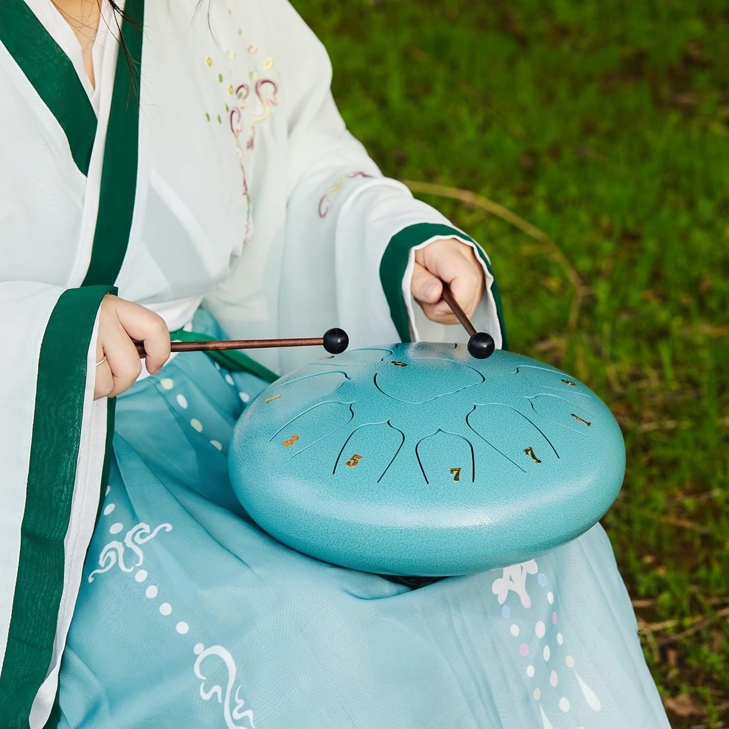 Язык барабана принимает форму листа лотоса, который является уникальным и красивым.
