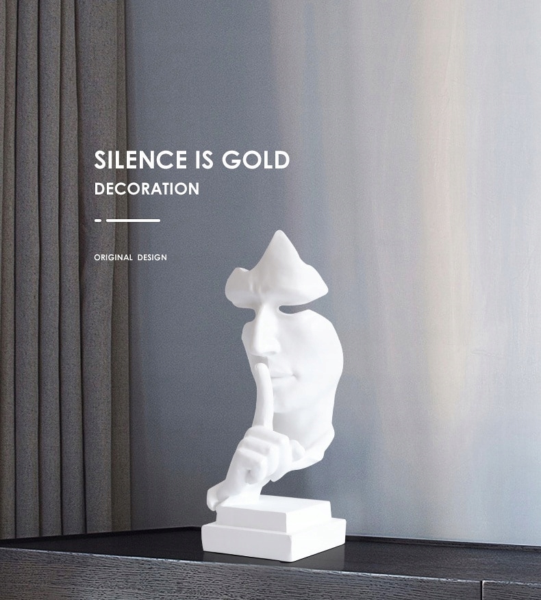тишина — это золотая маска, статуя, абстрактные украшения, декор