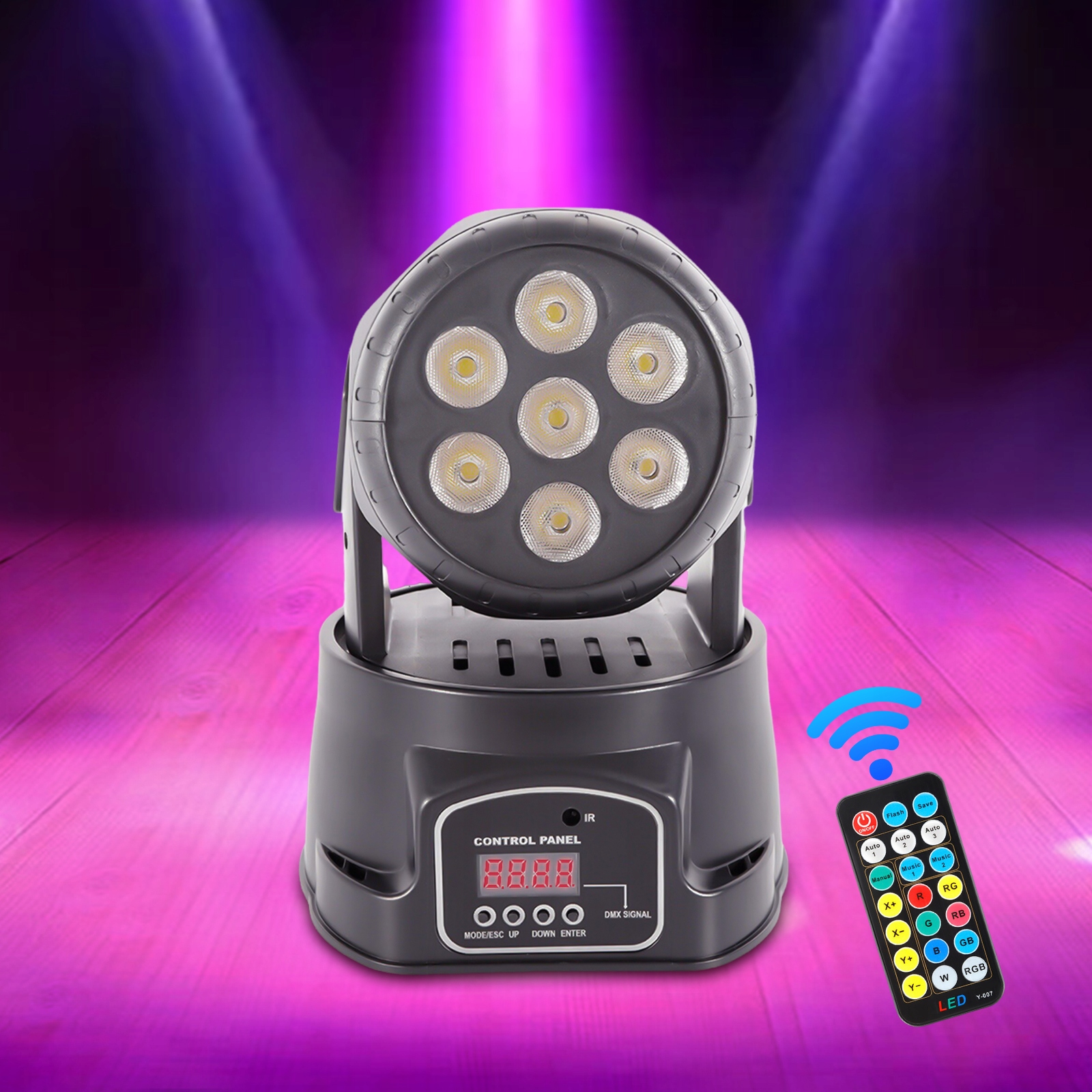 СВЕТОДИОД С ДВИЖУЩЕЙСЯ ГОЛОВКОЙ 7X 10 Вт RGBW DMX STROBO + ПУЛЬТ ДИСТАНЦИОННОГО УПРАВЛЕНИЯ