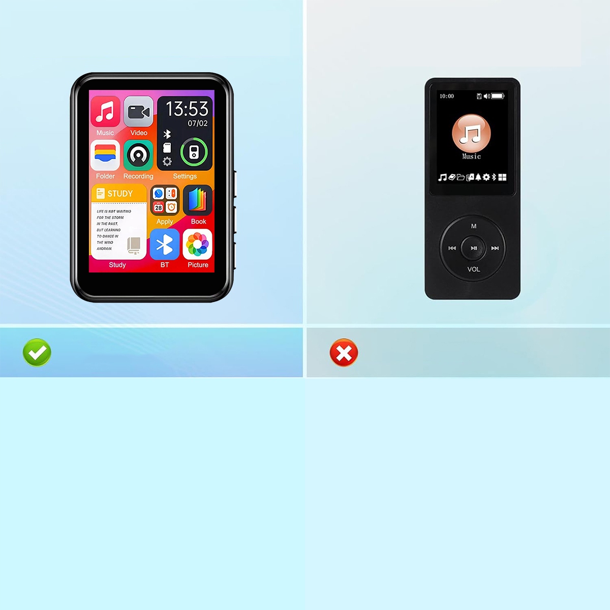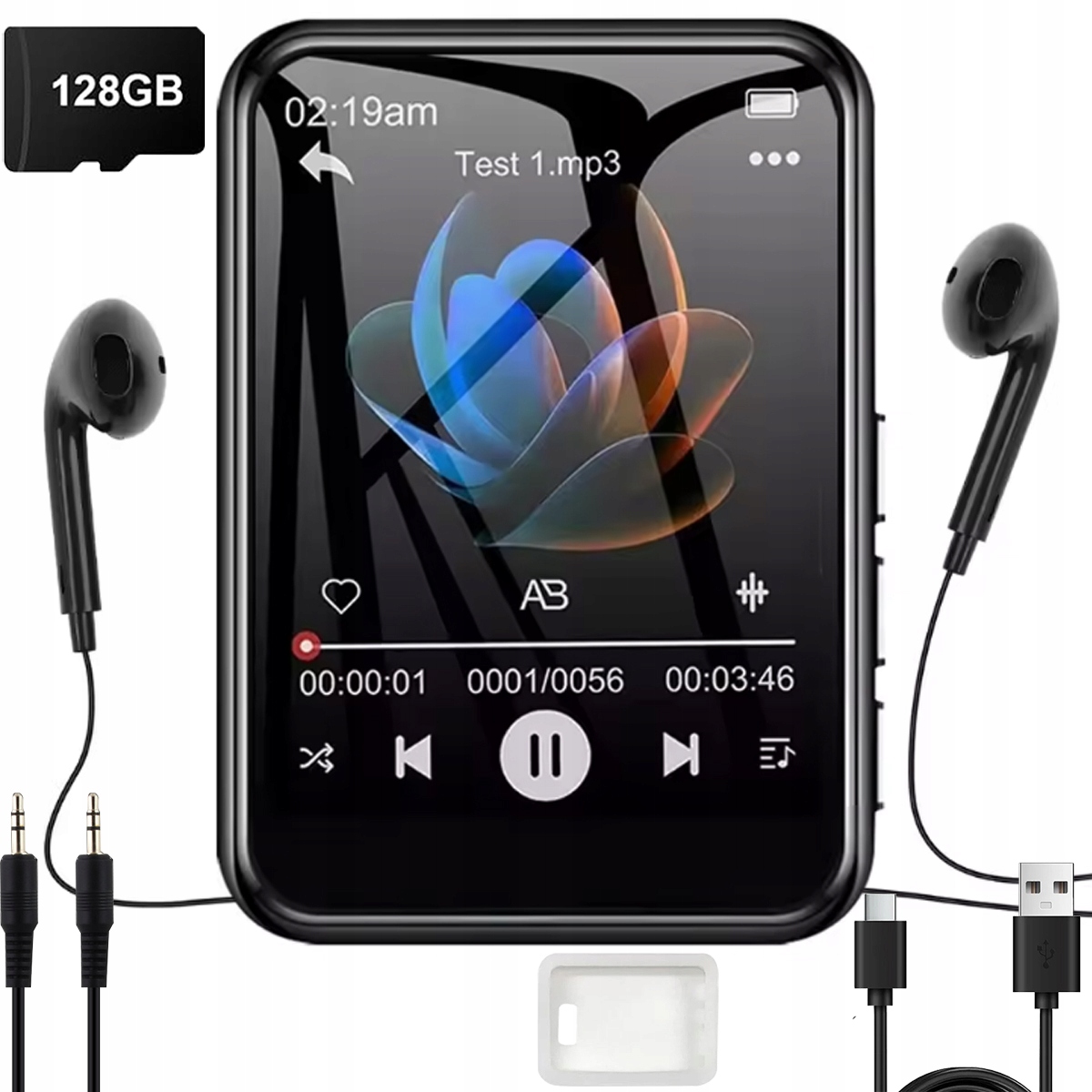 MP3-плеер, 128 ГБ, Bluetooth 5.3, сенсорный экран 2,4 дюйма, звук Hi-Fi, встроенный динамик, запись, возможность расширения до 512 ГБ, подходит для детей (черный)