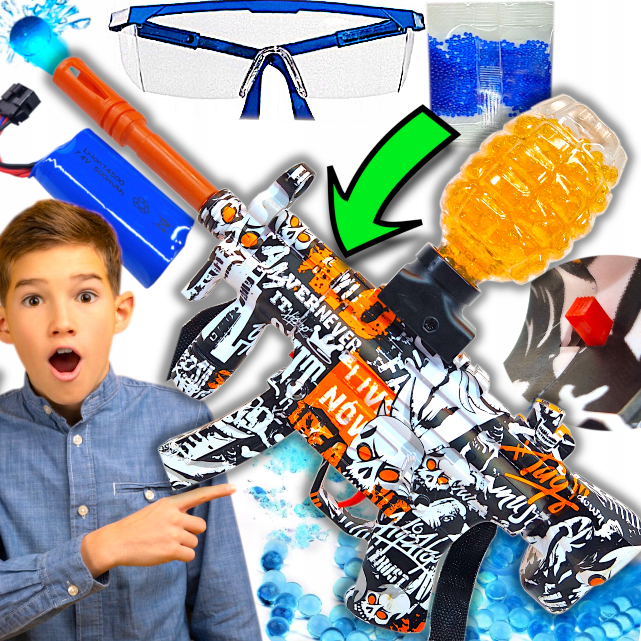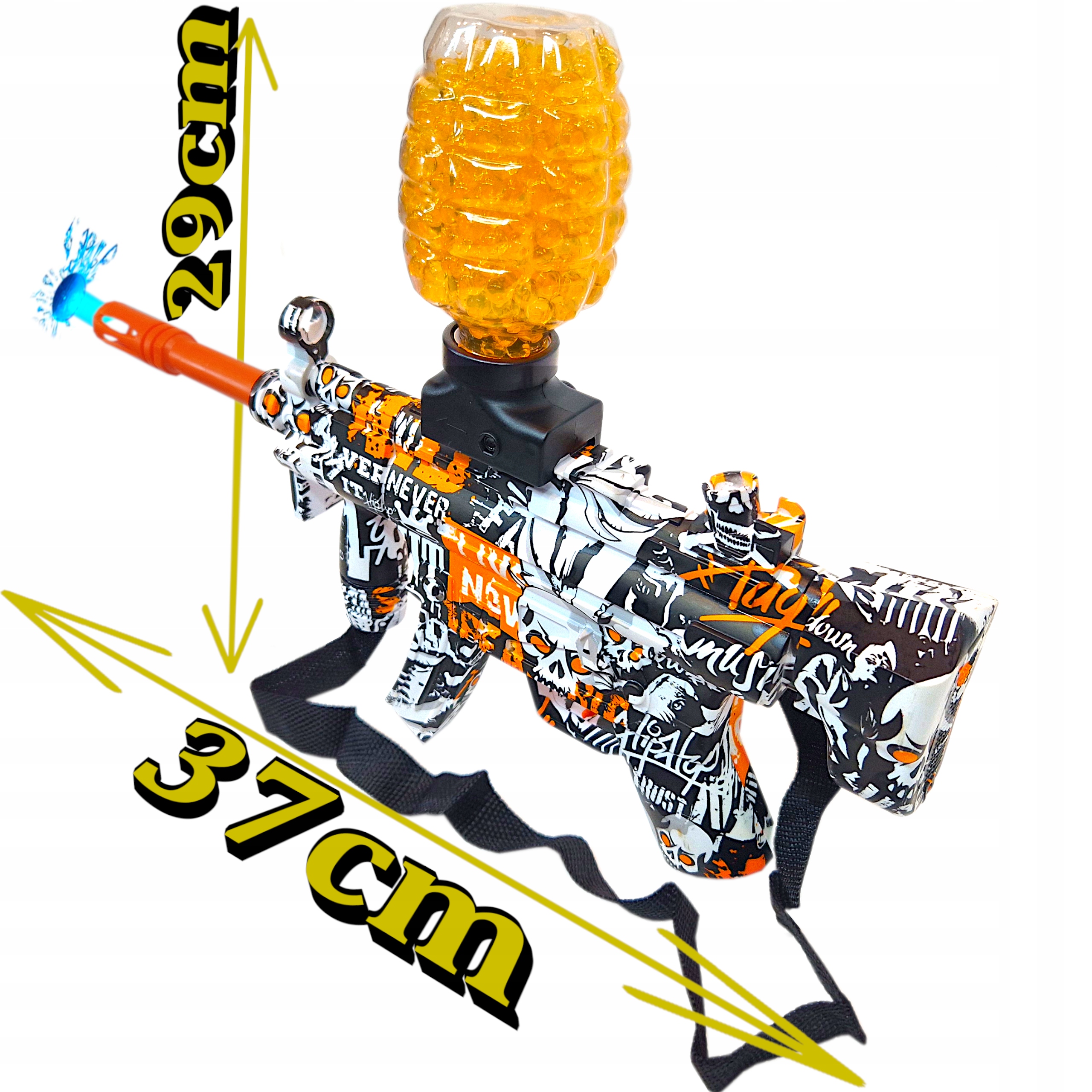 ⬇ Пулемет MP5 для гелевых шариков h1> · расстреляет серию - после удержания спускового крючка он стреляет с непрерывным огнем. Просто вылейте их в контейнер, вылейте воду, отложите на 3-4 часа, и шарики готовы к использованию. Диапазон составляет около 20-25 метров. Дополнительным преимуществом является то, что в журнале есть до 500 шаров. Журнал затягивается в воронку, вставленную в рельс орудий. Мы заряжаем его от каждого USB -зарядного устройства или порта ноутбука с кабелем, включенным в набор