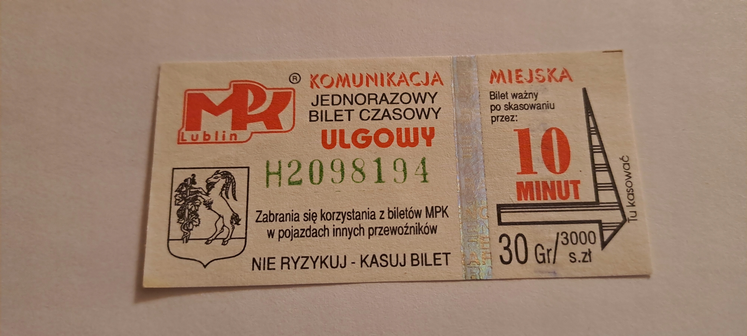 Mpk Lublin Ticket pln 30/3000 pln