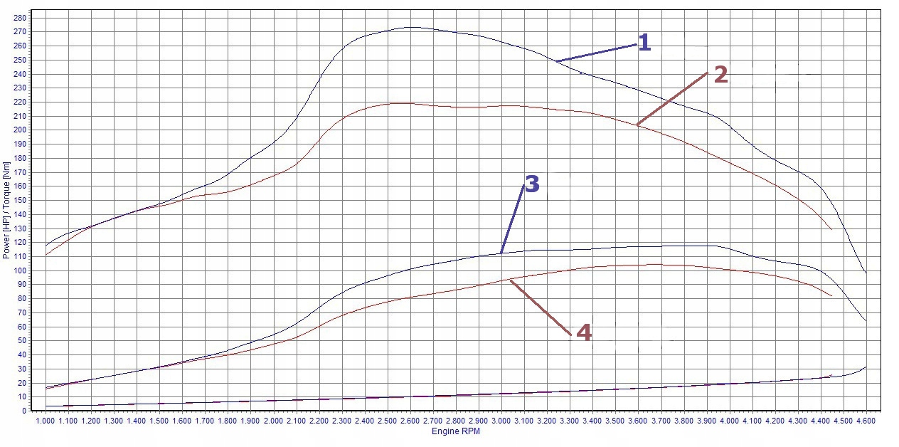 Динамограмма до и после модификации MPPS V13